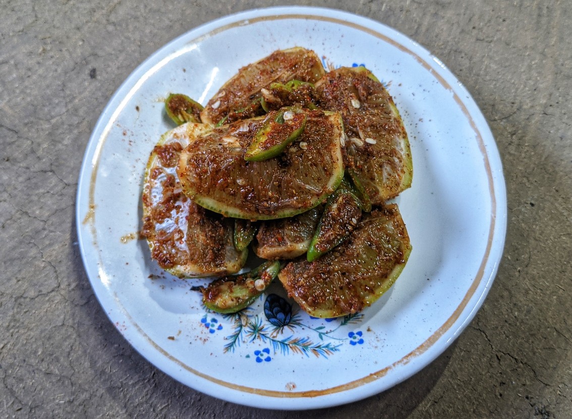 টুকটাক হলেও আচার তো খেয়ে নিই কিন্তু আচার বানানোর অভ্যাস বা অভিজ্ঞতা কোনোটাই আমার নেই তাই হাফিজ দা আচারের প্রতিযোগিতাটি আনুষ্ঠানিক ভাবে আয়োজন করলে আমি বেশ চিন্তাতেই পড়ে গেলাম। কি আচার করা যায়? কালী পুজোর আগ দিন পর্যন্ত অনেক চিন্তা ভাবনা করলাম তারপর খেয়াল হলো আমাদের বাগানের লেবু দিয়েই কোনো আচার করলে কেমন হয়। সারাদিন বিদুৎ না থাকায় ভাবনার সুযোগ পেয়েও গেলাম। সেই সুযোগ কাজে লাগিয়ে পাশের বাড়ির এক ভাইপোর সাথে লেবুর কোনো ধরনের আচার হয় কিনা সেটা নিয়ে আলোচনা করলাম। সেই মুহূর্তে আমাকে সে লেবু লঙ্কার আচারের কথা বললো। আমিও সুযোগ পেয়ে লেগে পড়লাম নিজেদের বাগানের লেবু এবং নিজেদের গাছের লঙ্কার সদ্ব্যবহার করতে। তারপর মায়ের সহায়তা নিয়ে বানিয়ে ফেললাম লেবু লঙ্কার আচার।