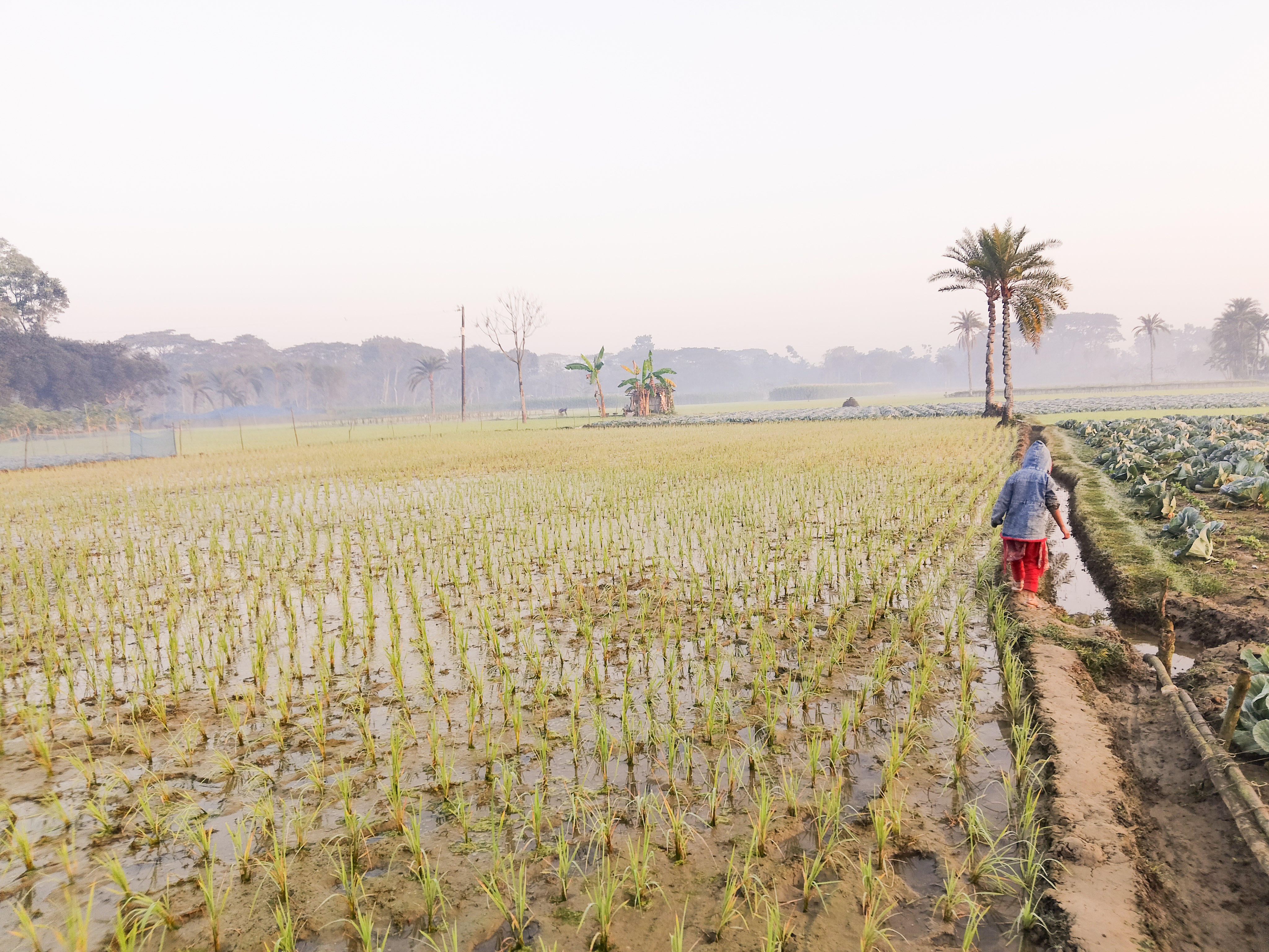 যশোর উপজেলায় কৃষিকাজের কৃষকদের খুব আপনজন হয়ে গেছে আমার খালাতো ভাইরা। তারা তারা তাদের কৃষিকাজের পাশাপাশি তাদের এলাকার তৃণমূলে কৃষকের পাশে থেকে সব সময় সহযোগিতার হাত প্রসারিত করেন। তারা তাদের জমির পাশাপাশি অন্যান্য জমির ফসলের সেচের পানি সরবরাহ করে অনেক কৃষকদের সেবা দিচ্ছেন। তারা তাদের আশেপাশের সকল কৃষকদের সহযোগিতা করছেন ।আসলে আমি যখনই মাঠে গিয়েছি তখনই কোন মাঠে কোন কৃষকের দেখা পায়নি তবে কৃষকের ছোট্ট মেয়েটি আমাকে ফসলের মাছ ঘুরিয়ে দেখিয়েছে আর এই মেয়েটি হচ্ছে আমার ভাইয়ের মেয়ে ওর মাত্র চার বছর কিন্তু ওর কথা শুনে মনে হবে যেন ও একজন পাকনা বয়স্ক বুড়ি আমাকে এত বড় ফসলের মাঠ পথ চিনিয়ে চিনি ঘুরিয়ে ঘুরিয়ে সকল ফসলের সাথে পরিচয় করিয়ে দিয়ে সব ফসলের মাঠ ঘোরাচ্ছিল। আমি সকালে শীতের শিশির ভেজা ধানের ক্ষেতের আইলের উপর দিয়ে হাঁটতে পারছিলাম না আর ও দেখেন কত সুন্দর করে হেঁটে হেঁটে চলে যাচ্ছে। শীতের ঝিরিঝিরি কুয়াশায় শিশির ভেজা ফসলের মাঠের উপর দিয়ে ওর হেঁটে যাওয়ার দৃশ্যটি আমার কাছে অসম্ভব সুন্দর লাগছিল। তাই একটি ফটোগ্রাফি করে রেখেছিলাম আর ভাবলাম এই ফটোগ্রাফিটিও আপনাদের মাঝে শেয়ার করি।