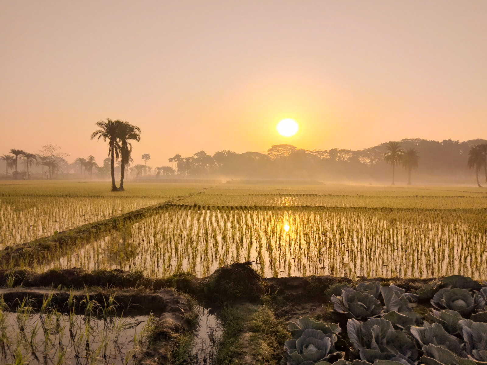 যে ফটোগ্রাফিটি দেখতে পাচ্ছেন। এটি হলো বাংলাদেশ একটি অন্যতম শীতকালীন সবজি পাতাকপি। ফসলের মাঠের ফটোগ্রাফি। আসলে আমি এত আপূর্ব দৃশ্য ও প্রকৃতি সামনাসামনি দেখতে পাবো কখনো ভাবি নি। মনে হচ্ছে যেন আমি এখনো অপূর্ব সকালের সবজি ফসলের ক্ষেত্রের মাঝেই রয়ে গেছি। আর মনে মনে ভাবছিলাম আমাদের বাংলাদেশে যারা শ্রম দিয়ে কৃষি কাজ করে যাচ্ছে তাদের মানসিক মেধার উপর কতটা শ্রম দিতে হচ্ছে। তা প্রতিদিন প্রতি মুহূর্ত আক্রান্ত পরিশ্রম করে কত ফসল উৎপাদন করছে যা থেকে বাংলাদেশ সুজলা সুফলা অনন্যত দেশ হিসেবে পরিচিত কিন্তু এতে করে এদেশের কৃষকরা পাচ্ছে না তাদের ন্যায্যো শ্রমের মর্যাদা। আপনারা ফটোগ্রাফিটিতে দেখতে পাচ্ছেন গাছের আড়ালে সূর্য তার মাথা উঁকি দিয়ে সমস্ত পাতাকপি মাঠ থেকে আলোকিত করে তুলেছে তার পাশাপাশি দু-দূরান্ত থেকে তালগাছ গুলো যেন দাঁড়িয়ে তার সৌন্দর্য প্রকৃতির মাঝে তুলে ধরেছে আর এই অসাধারণ দৃশ্য দেখে এমন কেউ নেই যে হারিয়ে যাবে না।