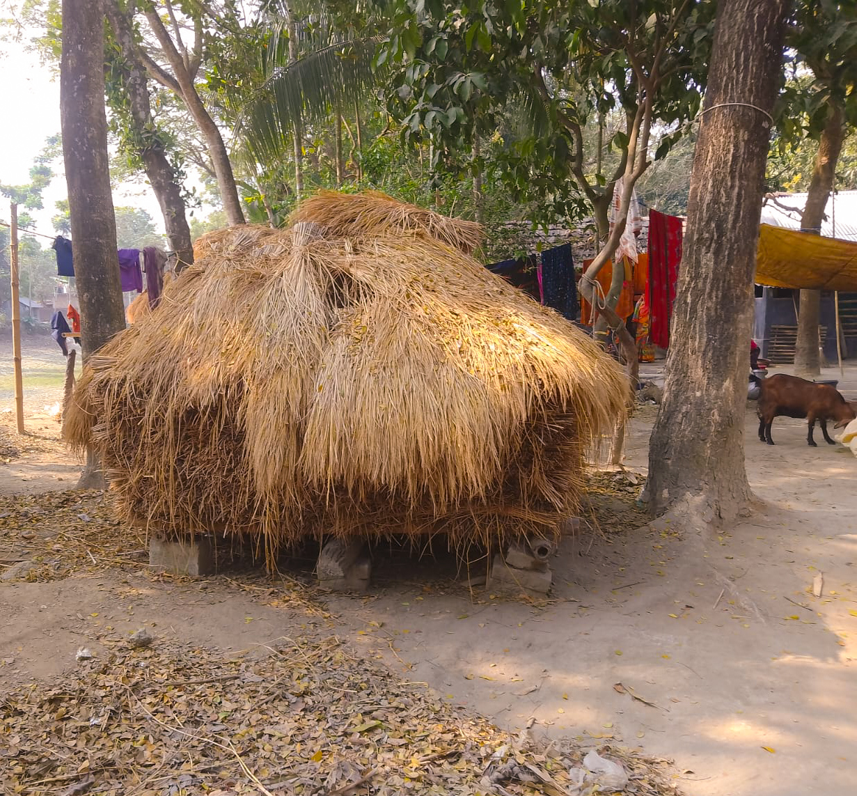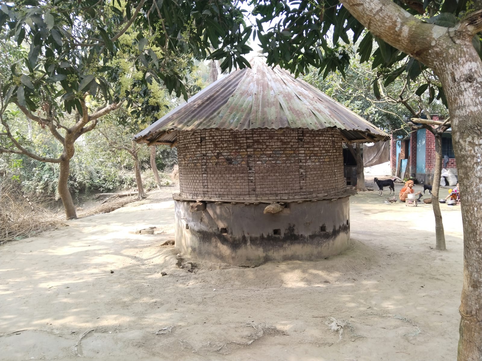 গ্রামবাংলায় প্রতিটি ঘরে গেলেই দেখা যায় যে ঘরে ঘরে ধান সংরক্ষনের জন্য বিশাল আকৃতির একটি ঘর তৈরি করা হয়। যেখানে সারা বছরের ধান গুলো সংরক্ষন করা থাকে। কারন একজন কৃষক তার সারা বছরের খাওয়ার মত ধান রেখেই বাকীটা বিক্রি করে দেয়। তবে এত কষ্টের পর কি একজন কৃষক তার ন্যায্য পাওয়না পায়? যাই হোক কৃষকের বাড়ীতে বানানো মানে আমার খালাদের বাড়ীতে বানানো এই দৃ্শ্যটি কিন্তু আমার কাছে দারুন লেগেছে।