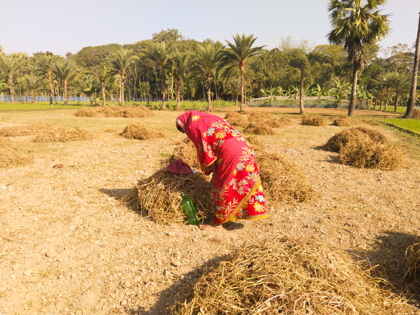 এবার গ্রাম বাংলার আরও কিছু অসাধারণ ফটোগ্রাফি নিয়ে আপনাদের মাঝে আমি হাজির হয়েছি। আর তা হল কৃষকের জন্য মাঠে খাবার নিয়ে যাওয়ার চমৎকার দৃশ্য। এই দৃশ্যগুলো যে কখনও এভাবে দেখতে পাবো ভাবিনি। এটি হচ্ছে গ্রাম বাংলার ঐতিহ্য। মাঠের ক্ষেতে কৃষকের বধু গামছা বেঁধে খাবার নিয়ে যায়। আর কৃষকের বধু হচ্ছে আমার খালাতো ভাইয়ের বউ আমার ভাবি। ভাবি যখন খাবার নিয়ে যাচ্ছিল আমাদের সাথে নিয়ে গিয়েছে ফসলের মাঠ দেখে আসার জন্য। তখন আমরাও তার সাথে যাচ্ছিলাম। সেই বাসা থেকে মাঠ বহুদূর এত দূরে প্রতিদিন রোদের মধ্যে খাবার নিয়ে যেতে হয় । কতই না পরিশ্রম করে তারা। যেমন পরিশ্রম করে সংসারে তেমন পরিশ্রম করে ফসলে। আর দেখতে পেলাম একটি গৃহস্থ বাড়ির কাম অনেক। তাহলে এত কাম কিভাবে করে সেটাই তাদের দেখে আমি ভীষণ অবাক হয়ে গিয়েছি। আর মনে মনে ভাবছি আমরা একটা কাজ করতে ক্লান্ত হয়ে পড়ি। আসলে গ্রাম বাংলা নারীরা এক একজন অনেক পরিশ্রমী। যাকে বলা হয় বাংলার আইডল নারী। আমি যশোরে গিয়ে দেখতে পেলাম পুরুষদের পাশাপাশি বাড়ির মহিলারাও অনেক পরিশ্রম করতে পারে।