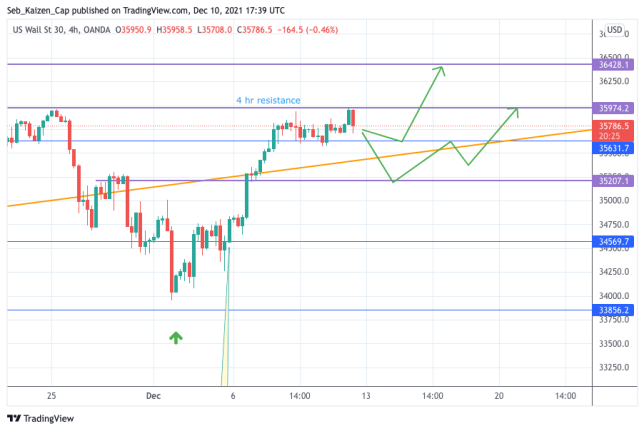 Also we have a strong resistance in the 36,000 area, so I'd like to see a break and candle closure above that so we can test the 36500.