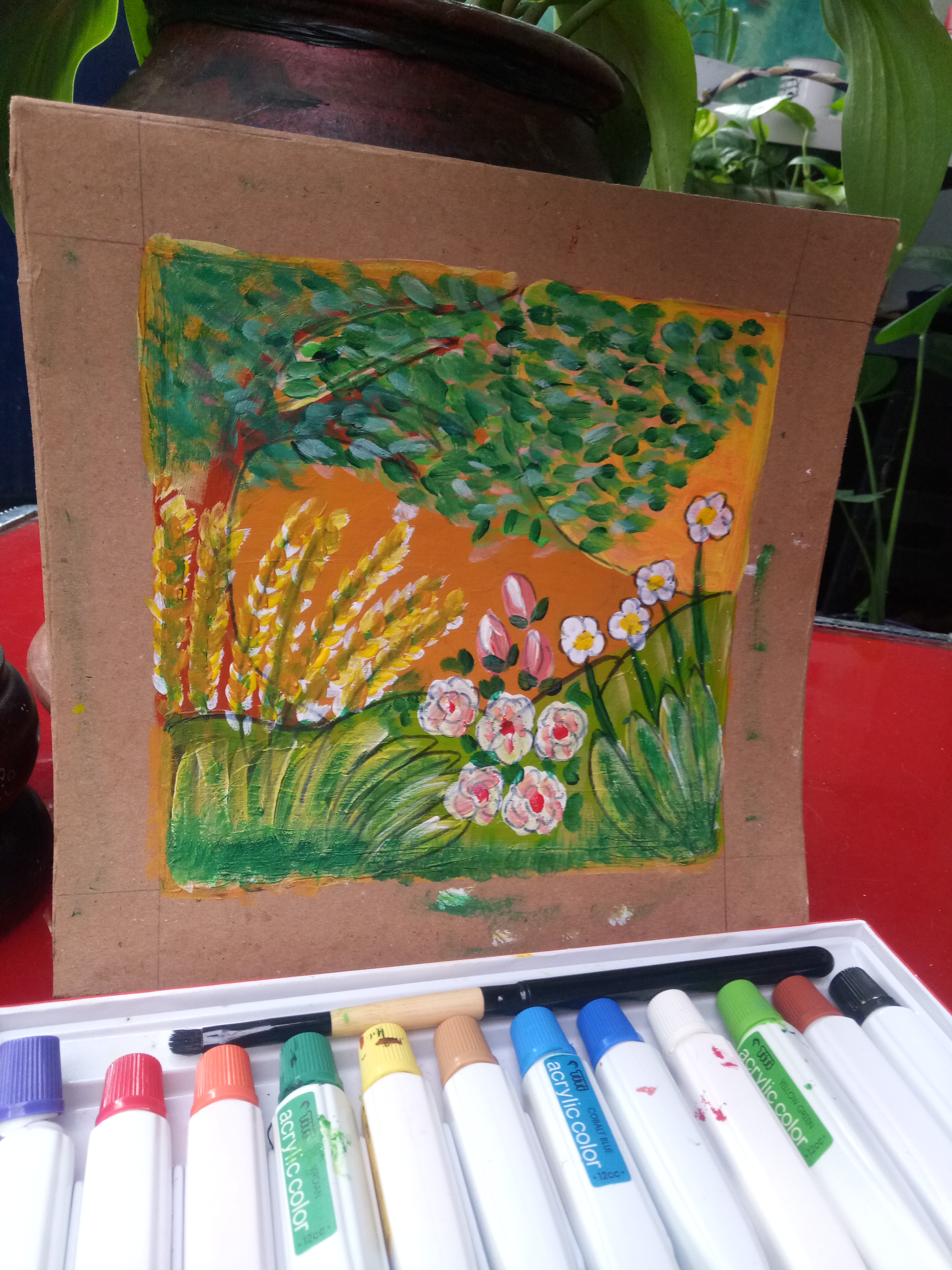 Ini lukisan pertama saya menggunakan cat akrilik. Dibutuhkan keberanian untuk mulai melakukannya. Hari ini saya post di sini agar sahabat steemian's semua terhibur dan terus semangat berkarya.