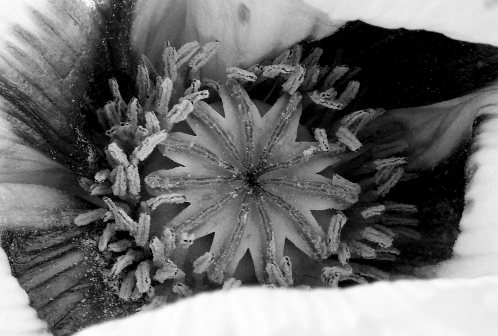 Poppies are fascinating, as well. We notice their bright petals... but not so much what is happening at the center: