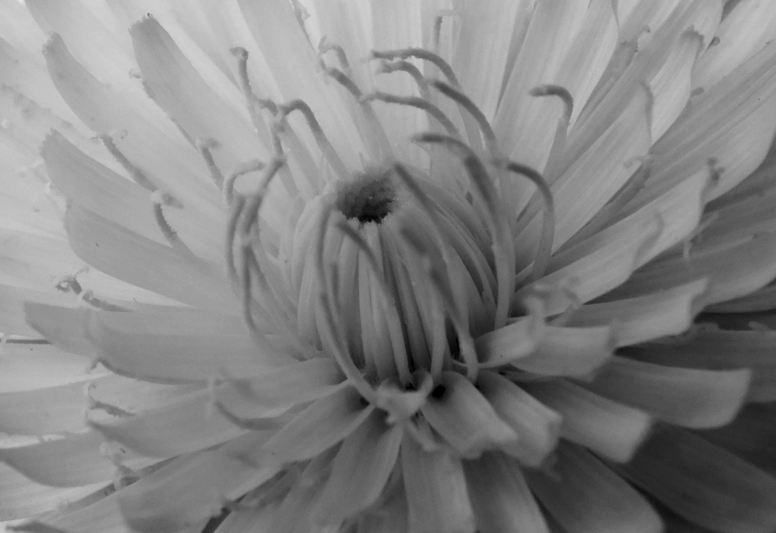The heart of a common catsear flower, magnified greatly. What you there is about 2/3" or 15mm across