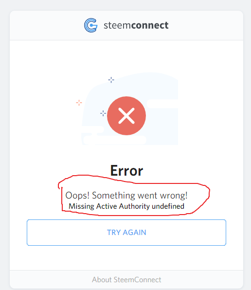 steemconnect login error please help Missing Active Authority undefined [ use active or master key but problem not solved