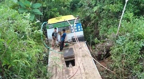 Sementara Edi Saputra gagal melompat sehingga ikut bersama truk ke dalam jurang.