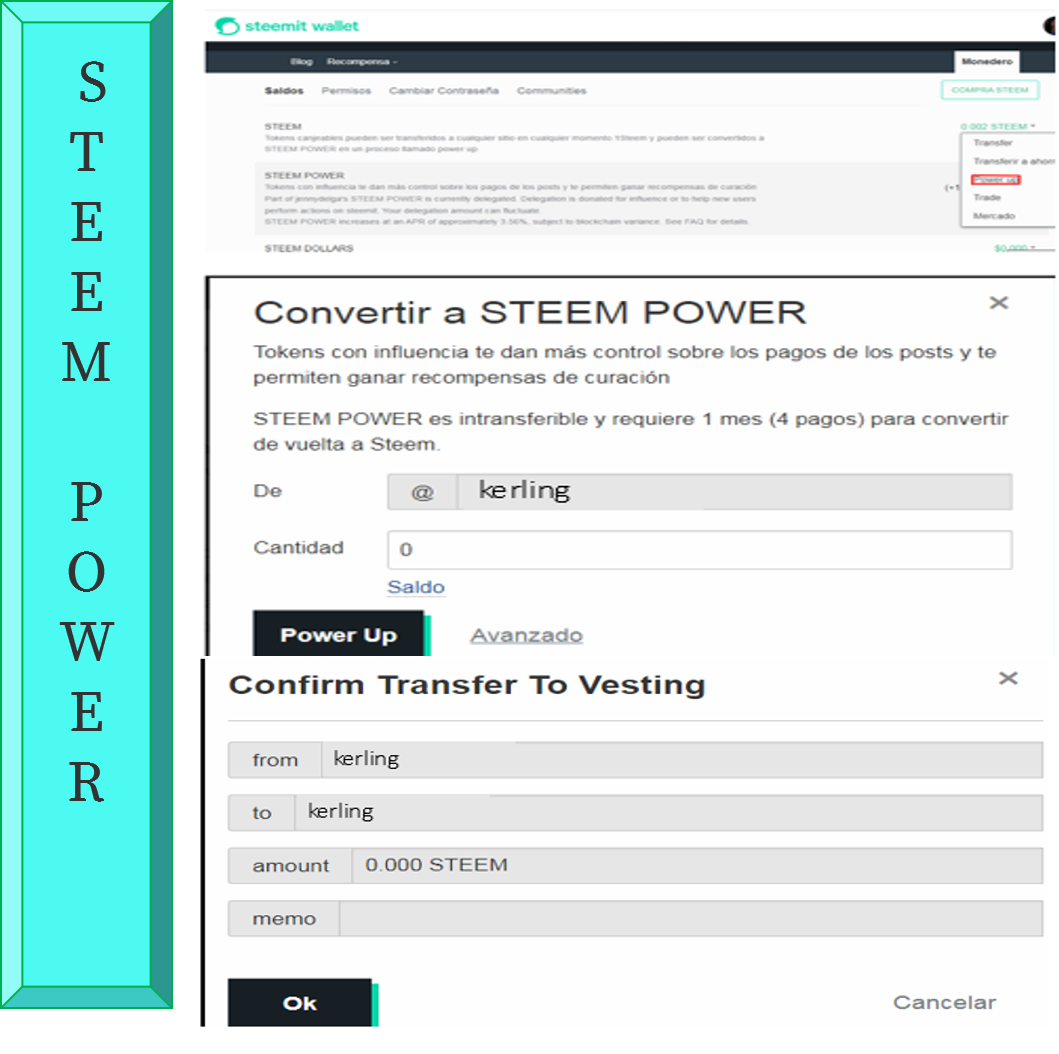 Se convierte el Steem liquido, presionamos power Up, elegimos la cantidad, para aumentar mi poder de votos en la plataforma. A tal manera que me promociona con los miembros de las comunidades.