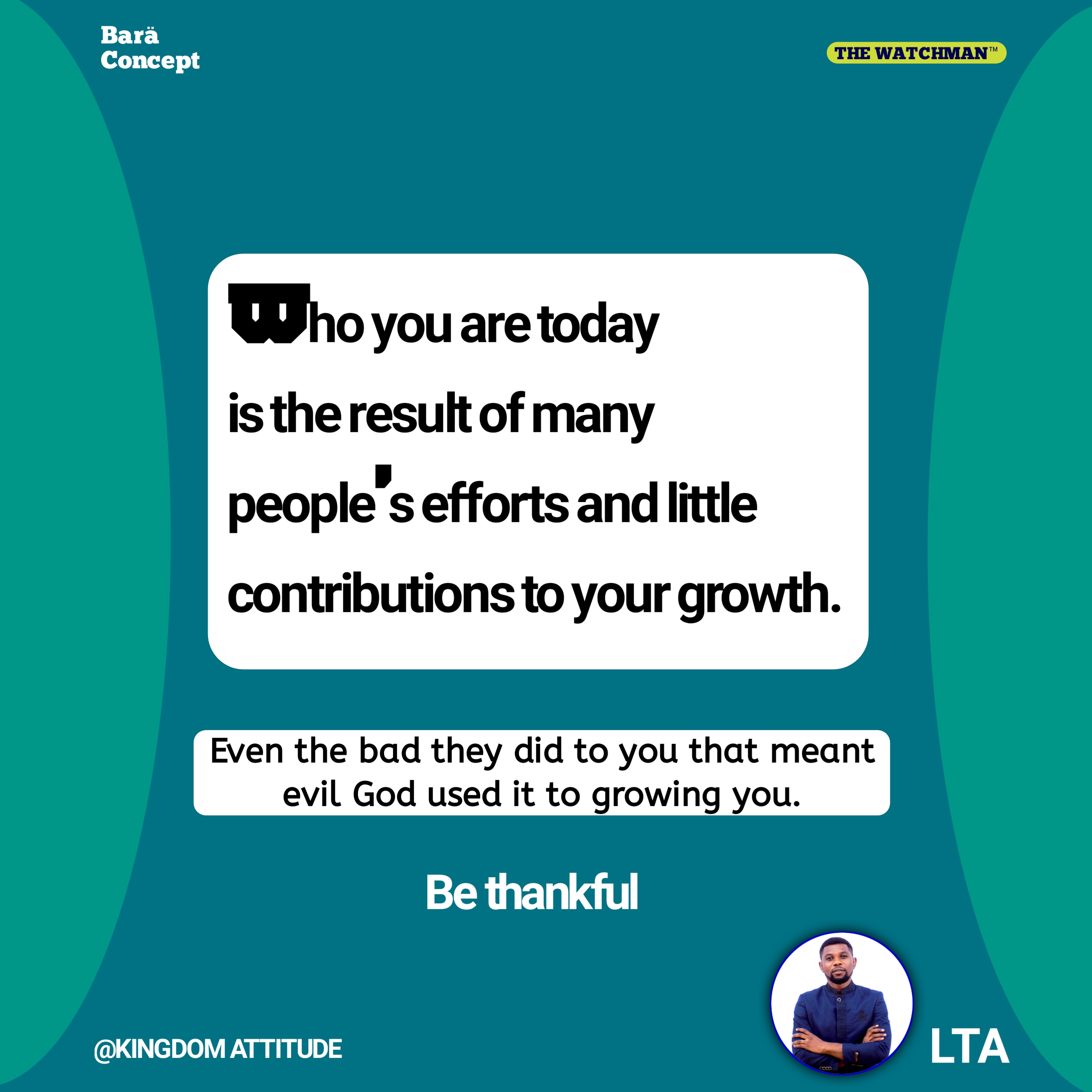 "Who you are today is the result of many people's efforts and little contributions to your growth." ~LTA