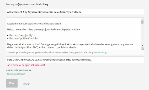 Ayo lanjut menulis posting blog Achievement 2 tentang Keamanan dasar pada akun steem sambil menunggu antrian verifikasi dari tim Greeter.