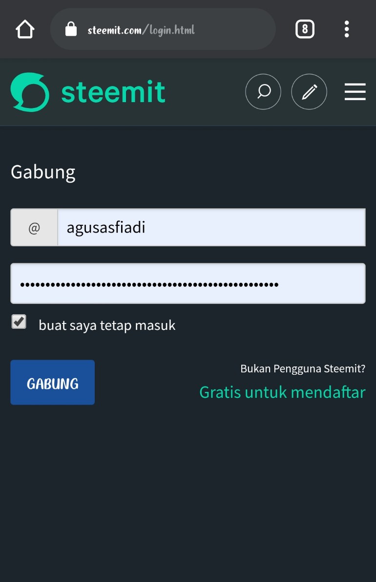 Foto2: screenshot login di akun steemit