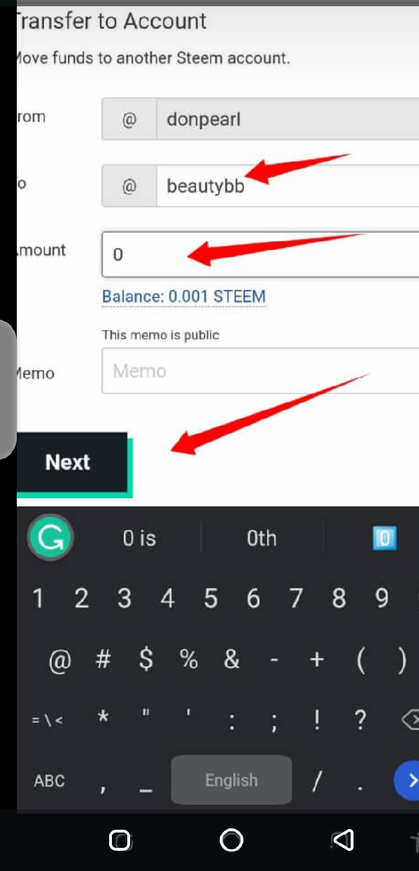 I will make sure the user name is correct before sending,then click ok. Eg assuming i want to transfer to @beautybb