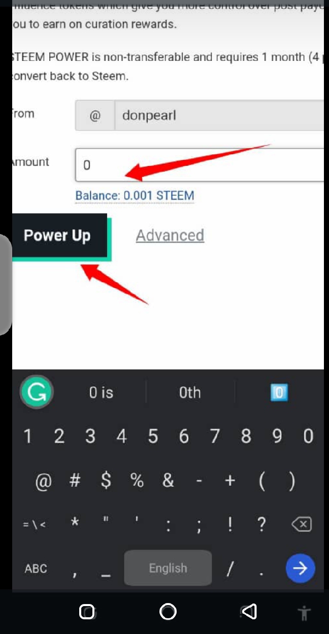Assuming i have a token to power up,bellow shows the screenshot photo on the procedure.