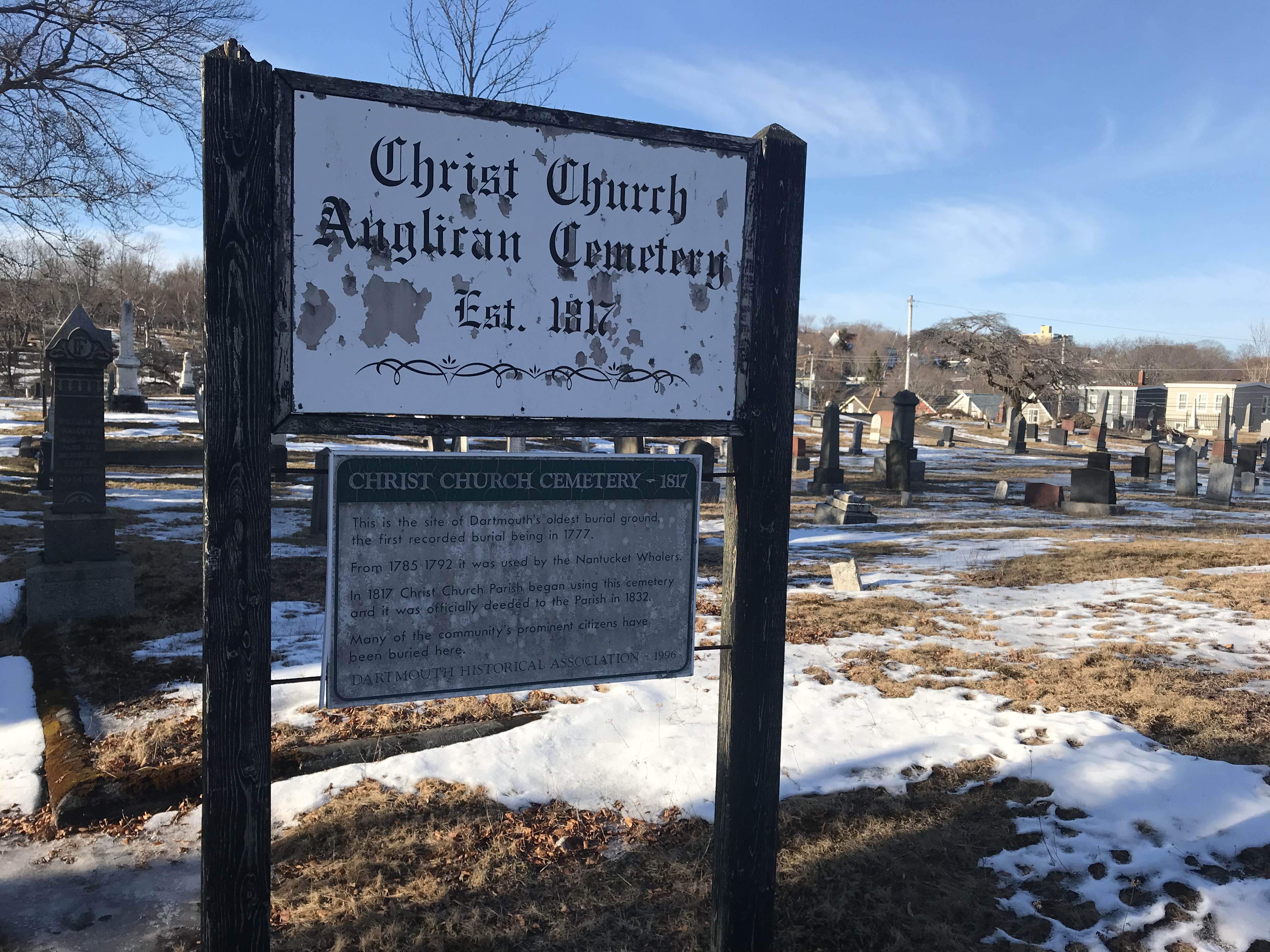 Once back on the Dark Side, we cut through Christ Church Cemetary, Dartmouth’s oldest cemetary, with the first recorded burials going back to 1777.