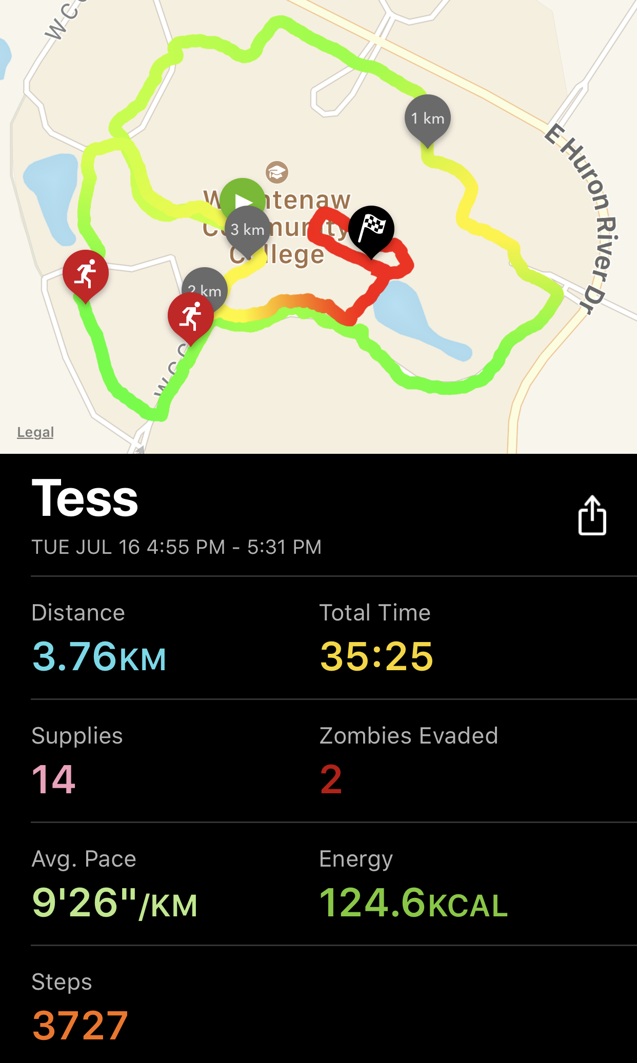 Still getting majorly ripped on the distance on the Zombies app, but it’s alright, I just use the Fitbit app at the same time.