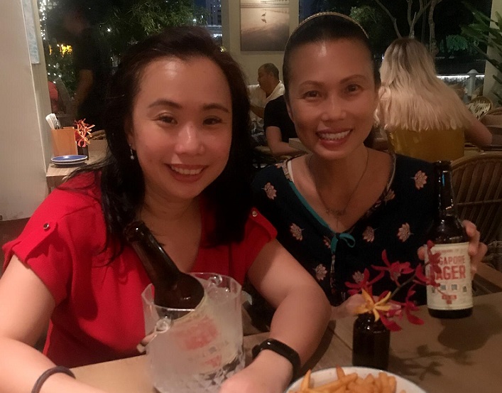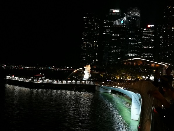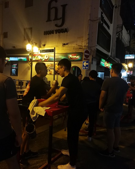 I maxed out my steps when I decided to walk to Robertson Quay from my hotel. I googled the location of this restaurant called Summerlong and it was a 45 -50 minute walk. I thought why not? I need the air and to work off some sitting around all day. So off I went. What I didn't quite anticipate was some of the slight detours that I had to take because of the highways that I was going to cross to get to where I wanted to go. All in all I am so glad that I make the choice to walk. Unknown to me, it had rained cats and dogs all day earlier and when I started my little adventure the air was cool and clear. There was even a refreshing breeze that accompanied me for most of the walk! The night sights was beautiful indeed. I passed by the Esplanade, had a chance to walk across Jubilee Bridge and pass by the Merlion which is Singapore's official mascot. It is a mythical creature that has a lion's head and the body of a fish. Marina Bay Sands was also brightly lit as I continued along the riverside until I crossed over to the Fullerton Hotel side. I walked further on to Clarke Quay and I saw this funny sight of guys arm wrestling! They actually had tables set up with special grips for them to arm wrestle! Then I continued on towards Chinatown and finally made it to River Valley Road and then to Robertson Quay.