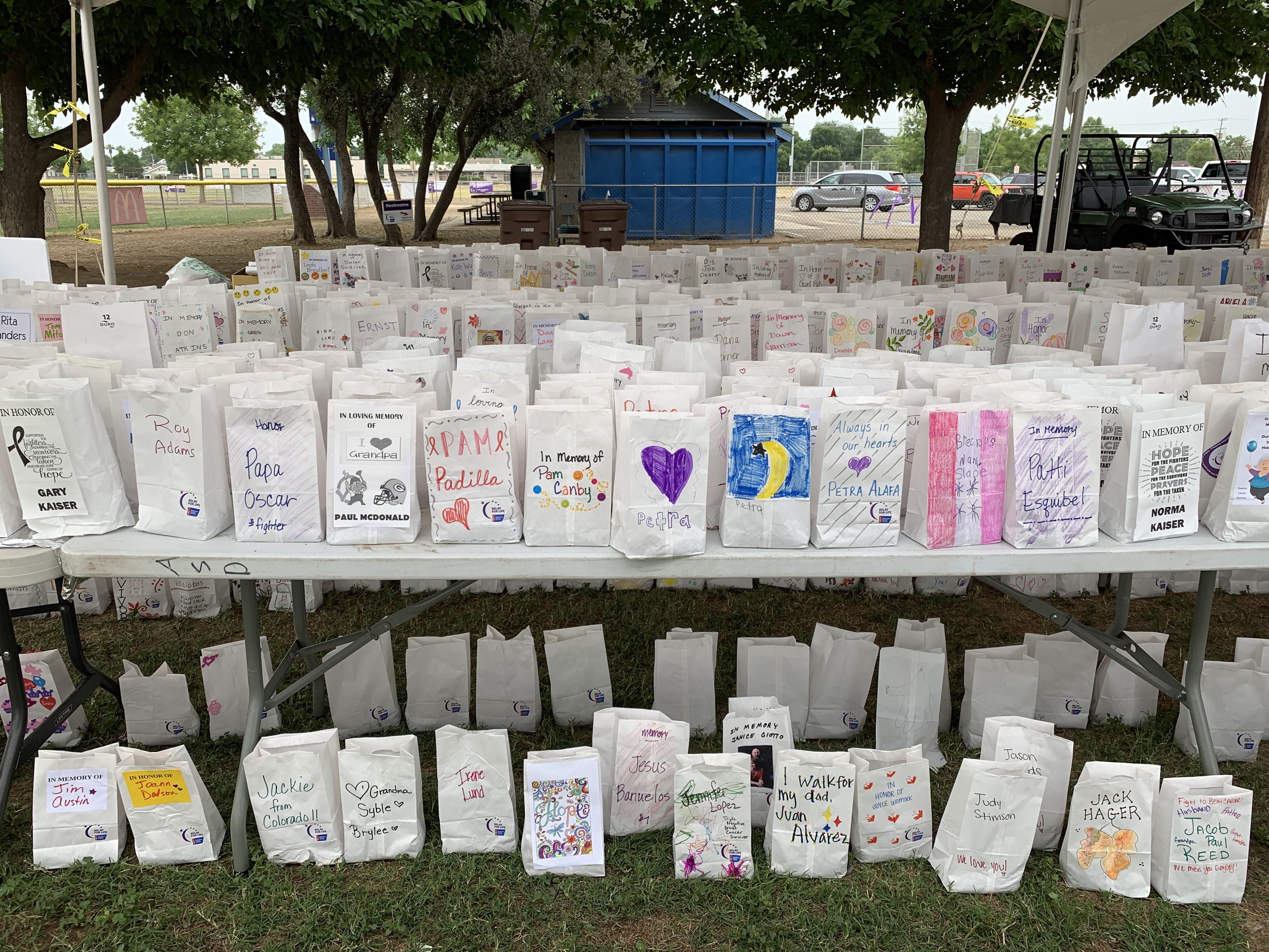 The rain ruined all the hard work they put into this event. There were so many luminaria bags that were never lit. Years ago when I walked with work I remember a little boy that had so many bags in memory of him. It really leaves an impression to see them all lit up. I never thought one day I would have luminaria bag with my name on it.