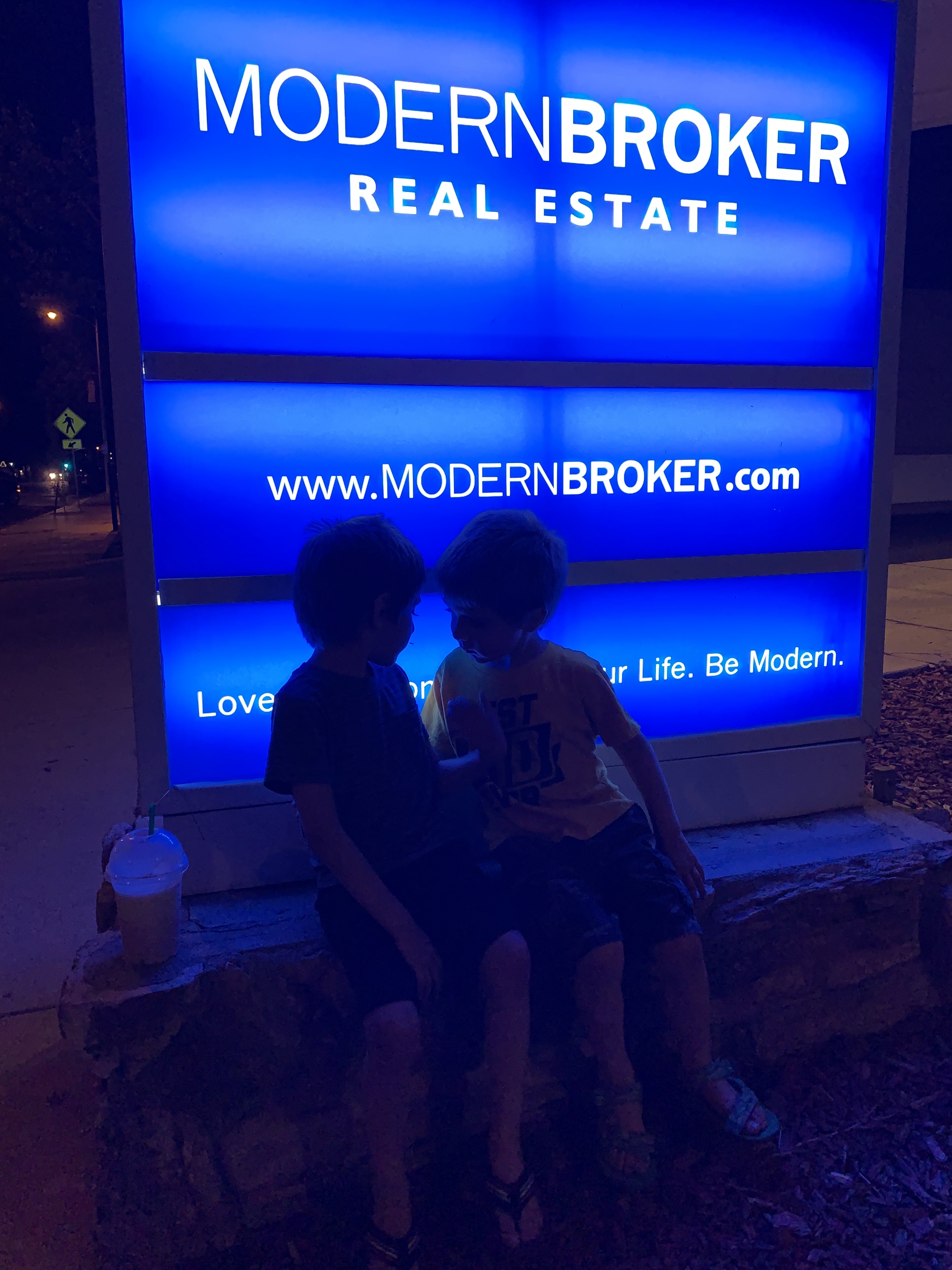 The day ended with a walk downtown. The boys love to read this Modern Broker sign... they want to run once they se it.