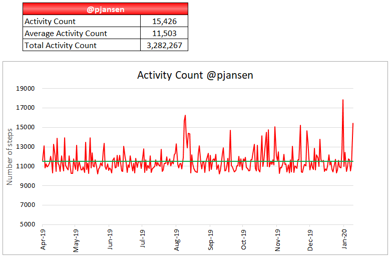 This section provides the results from 31-January. The following tables and charts contain the Top 20 leader-board with highest Activity Count and the Activity Count distribution.