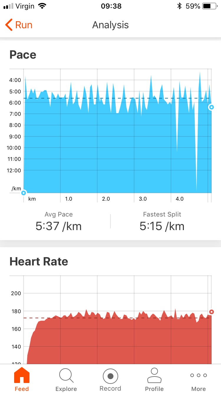 Today’s run I sort of did fartlek training, I ran 1k warm up then I randomly sprinted (or at least ran fairly fast) for 2 lampposts then slowly jogged recovery for 2. I carried on doing this for pretty much the whole 5k.