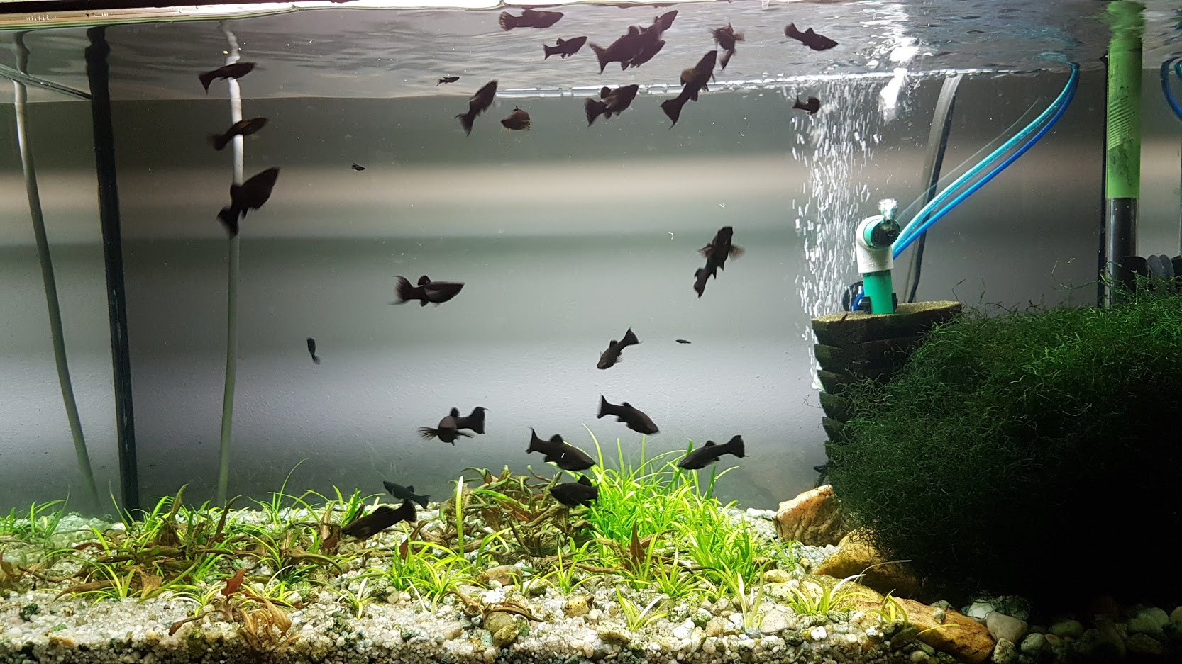 Jestli tam vidíš takové černé fleky. To drobky nejsou, to jsou ryby :)