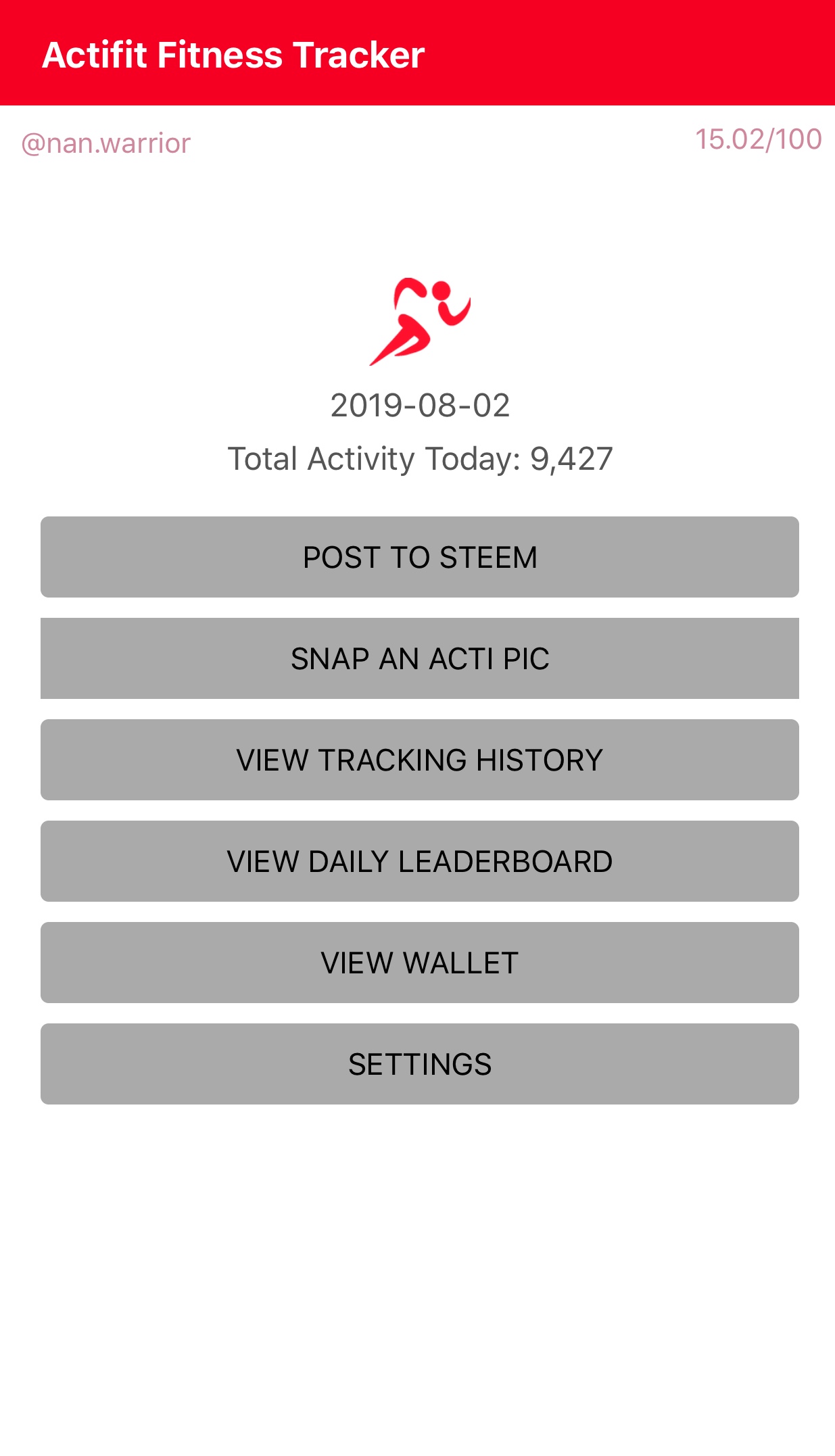 My Actifit Report Card: August 2 2019