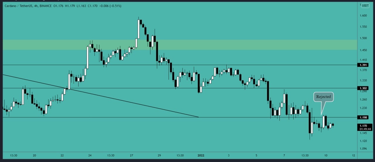 Cardano Analysis 01/10/2022azhardgamer (26)in #ada • 4 years ago ADA breaks the support of $1.2 area and also retested it. ADA need to go above the $1.2 area to gain some upward movement. The next major support is near $1 area. Wait for a break above $1.2 area or a retest of $1 support area for new entries. #cardano