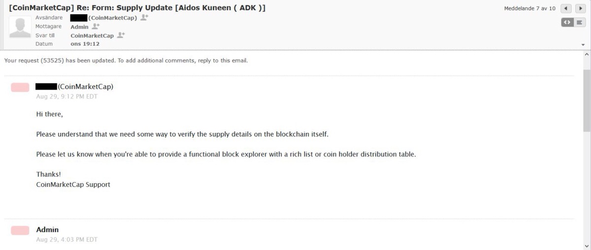 I received strange e-mails below (answer about listing ADK on CMC).