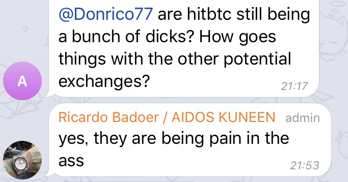 ADK team can’t control them and there are some delay on that plans, since that plans need cooperation of CMC and exchanges.