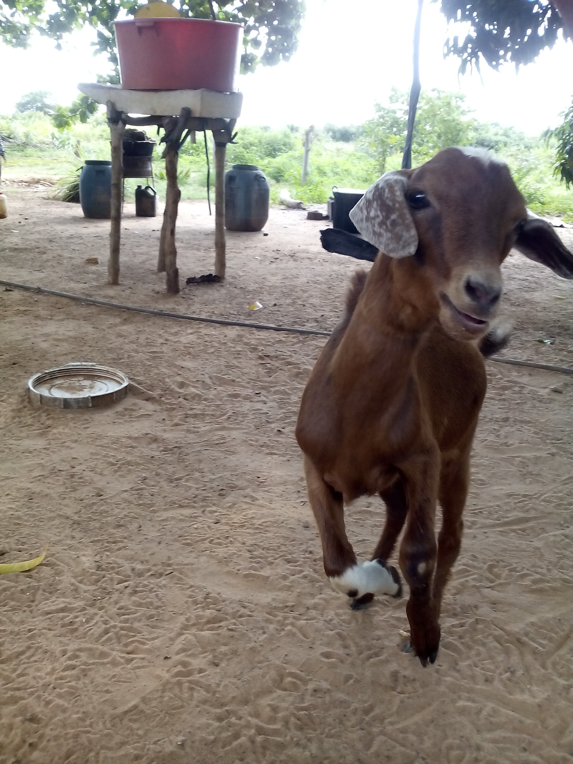 Llegando a la granja en toda la entrada de la casa, esta un chivito llamado "Piedrita", su particular nombre se debe a que es muy violento, los encargados de la granja dicen que es como una piedra en el zapato y por tal razón está amarrado.