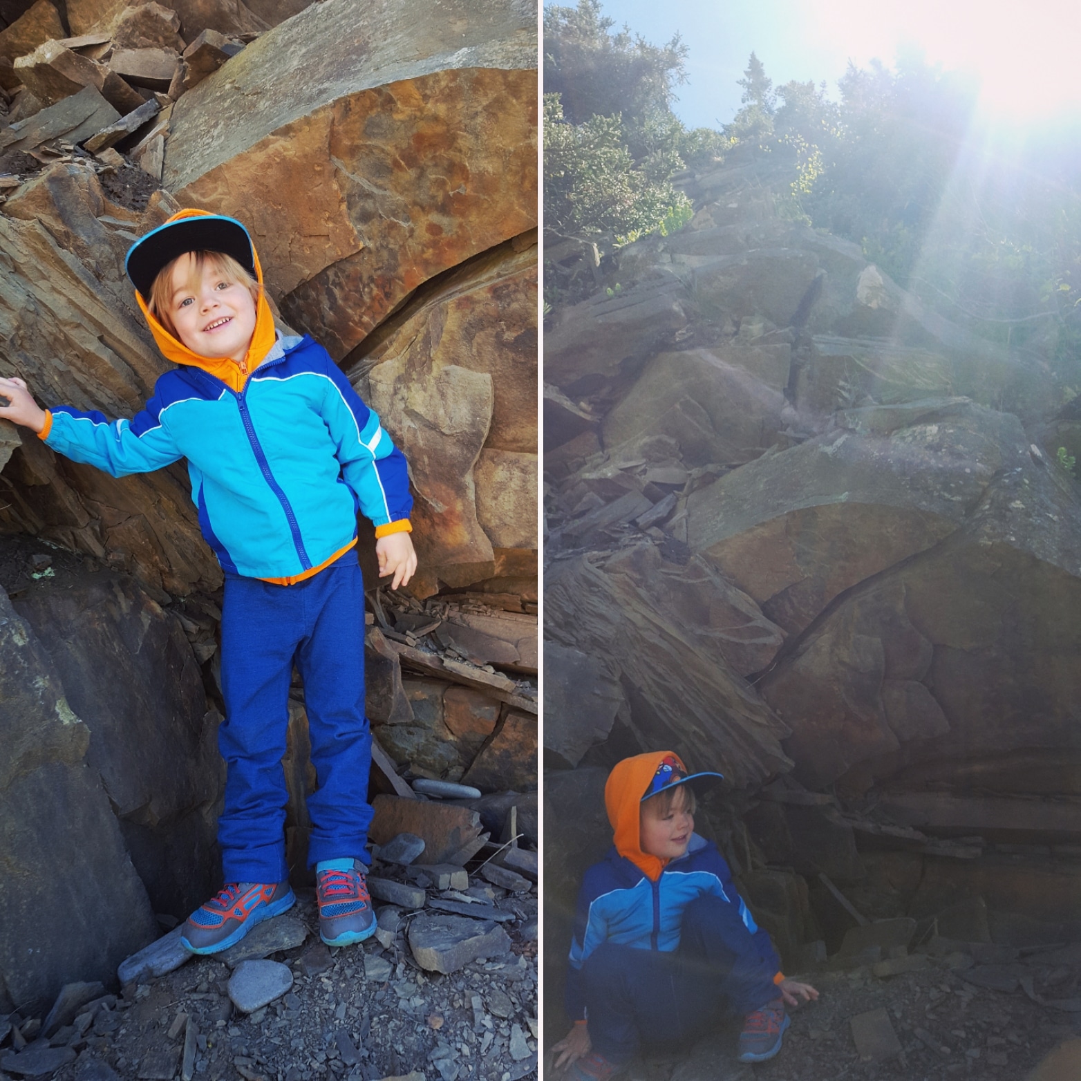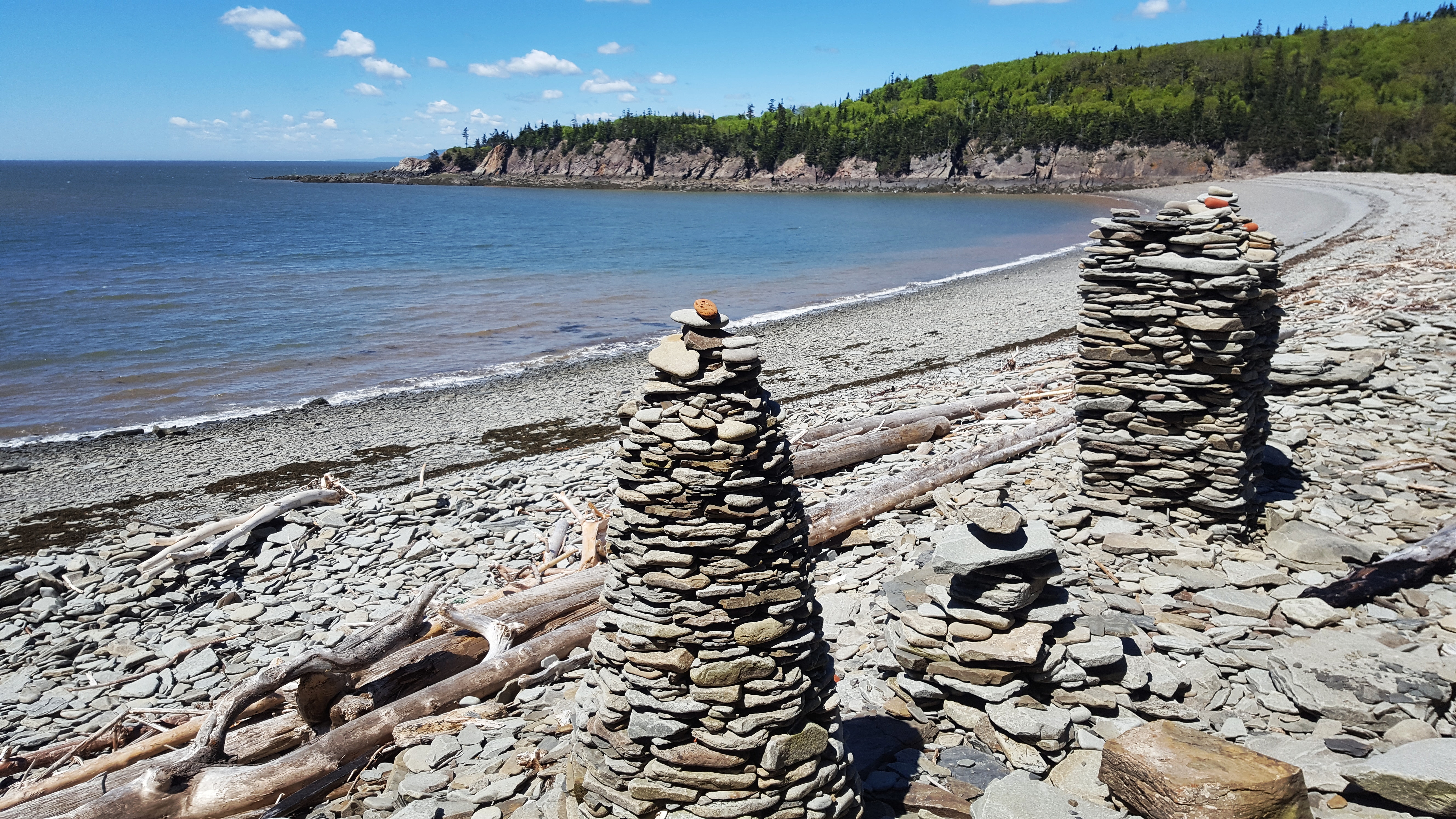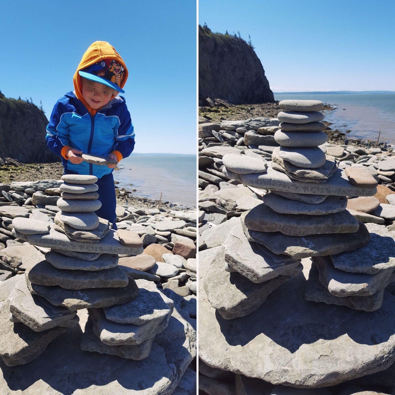 Out on a recent family trip we returned to a familiar beach to comb for driftwood and other treasures. We discovered these two enormous stone pilings near sheltering cliffs. This is a beach known for it's wind tunnel effect and its smooth flat stones. We arrived with the high tide receding, when it it low here a wonderful sandy beach is exposed below the rocks. The french settled here first and gave the area it's original name Cap en rage we now call Cape Enrage.