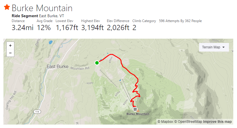 But I wasn't going there to ski, I was going there in the summer, to ride my bike up to the top. And for what Burke Mountain may lack in terms of ski renown, it makes up for in the form of a brutally steep (and scenic) paved road to the top of the mountain. Perfect for cyclists looking to test themselves against some of the toughest gradients seen in the country.