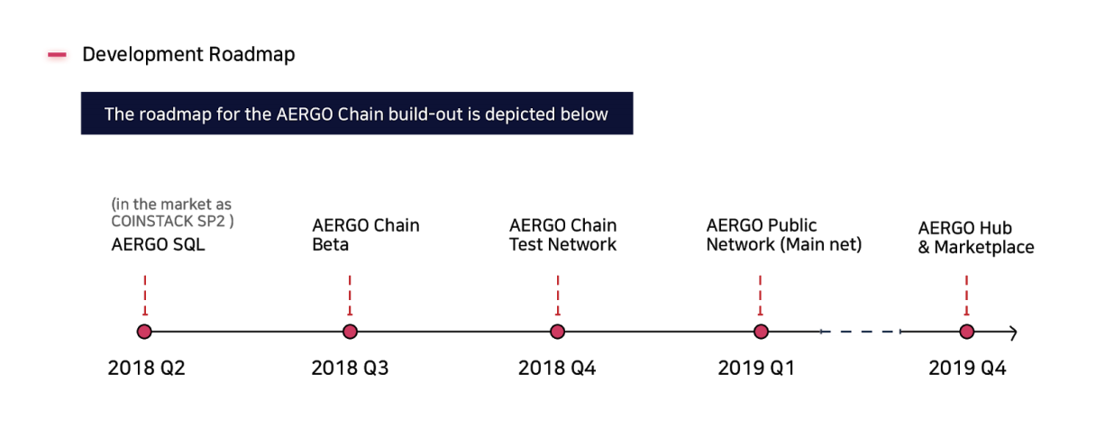 разрабатывается на основе работающего сервиса Coinstack, запущенного компанией Blocko, работа над которым велась c 2014 года. За 4 прошедших года Blocko предоставляли блокчуейн-решения крупным азиатским фирмам Samsung, LG, Hyundai, а так же всемирно известным IBM. Coinstack успешно работает в эти компаниях, имея более 20 миллионов пользователей. Aergo - доработанный Coinstack с открытым исходным кодом.