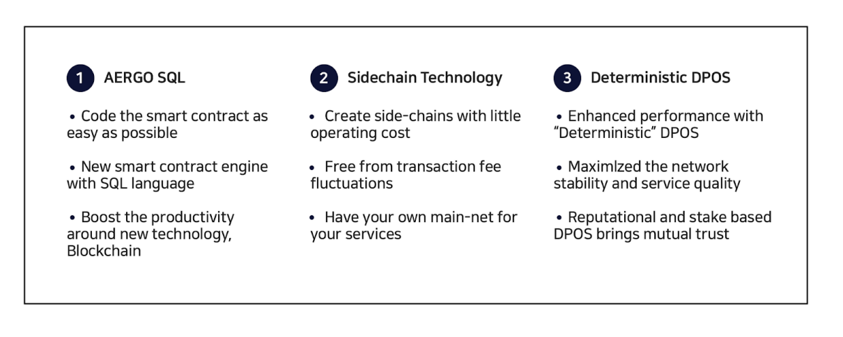 Aergo is a 4th generation blockchain seeks to enable enterprises and developers to easily design, build and deploy their own blockchain applications within the cloud. The Core technology of the project is based on COINSTACK from Blocko, leading company providing blockchain technology to enterprises and business. By developing SQL-based smart contracts Aergo opens up a new era of mass market usage of blockchain technology.