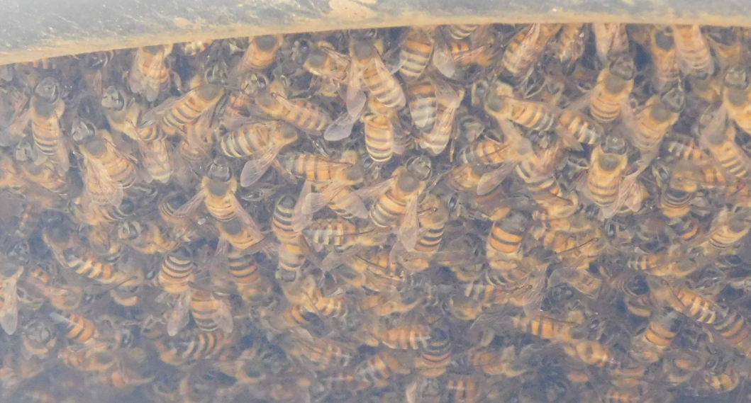 Holy crap! thats alot of bees lol You might need a bee suit if there are that many bees around!