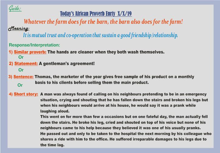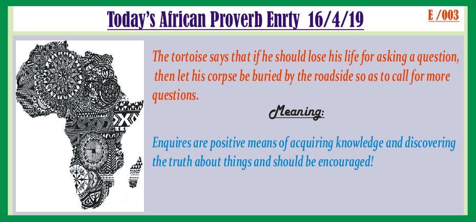 AFRICAN PROVERBS INTERPRETATION EXERCISE/CHALLENGE - 16TH APRIL 2019 (E/003)