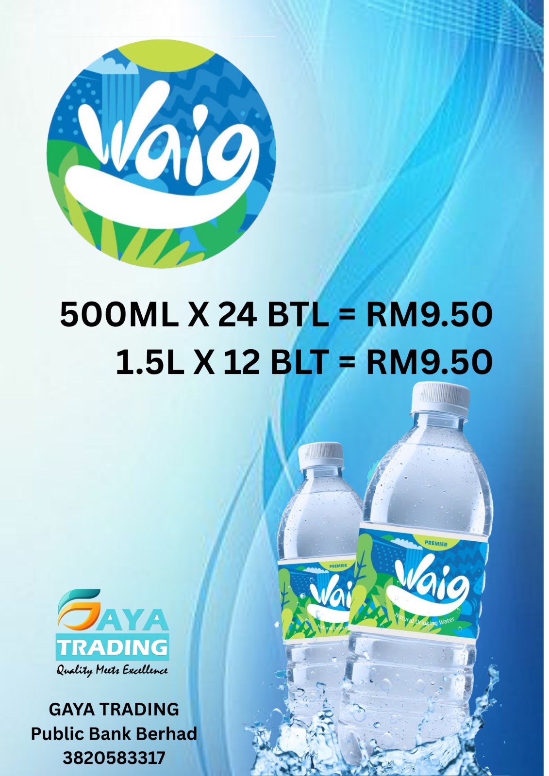Kami dari Gaya Trading , ada menjual air minuman jenama WAIG dengan harga yang berpatutan untuk membantu menampung keperluan madrasah serta pendidikan pelajar.
