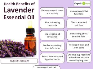 Lavender oil benefits mood and has long been used to help battle depression. A study published by the International Journal of Psychiatry in Clinical Practice reported that 80-milligram capsules of lavender essential oil can help alleviate anxiety and depression. The study also showed that there were no adverse side effects from using lavender oil to treat anxiety and depression. This is great news since we know that synthetic medications and psychotropic drugs often have many negative side effects.