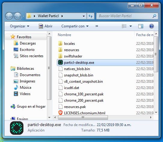 - Se descargara un archivo comprimido .ZIP el cual deberas descomprimir y creara una carpeta donde debes ejecutar el archivo particl-desktop.exe para abrir la Billetera.