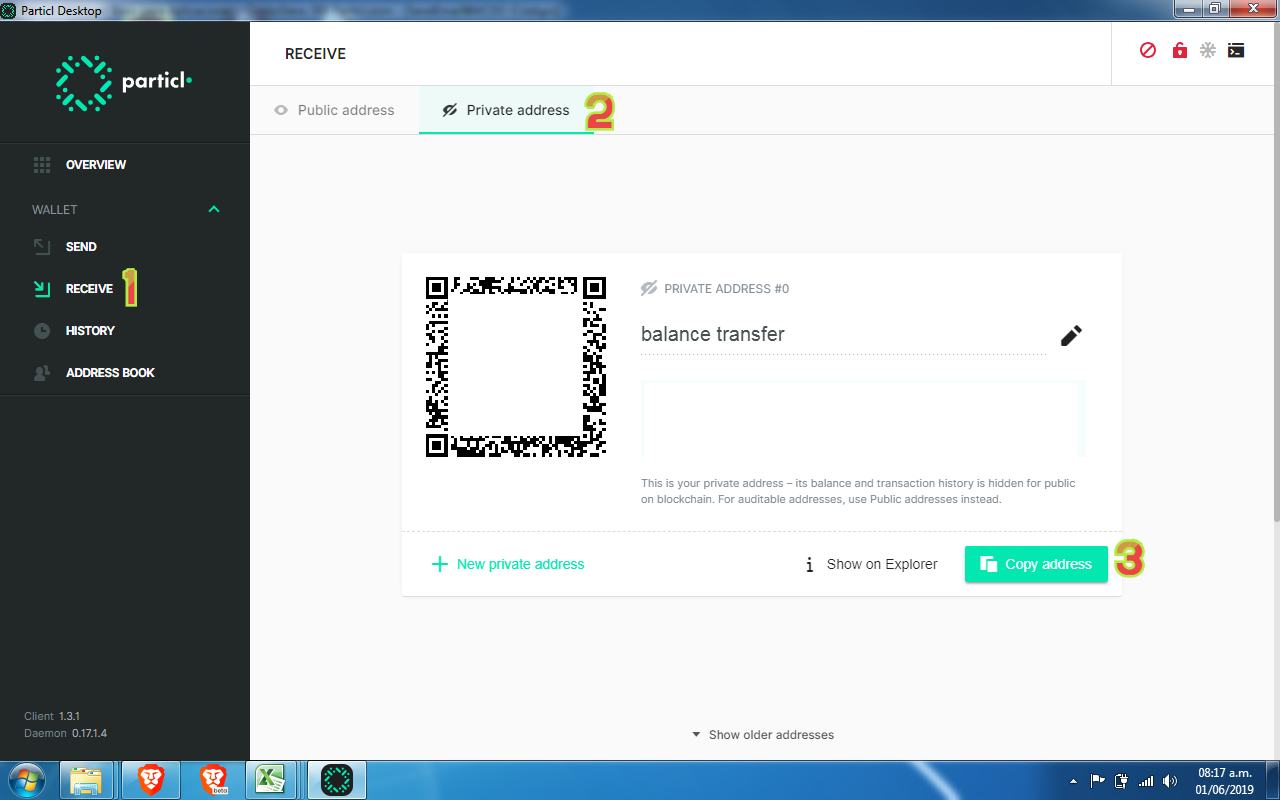 5- Envía tu Direccion Privada (NO ES LA PRIVATE KEY) al email friends@particl.io con el mismo correo electrónico con el que te registraste en el Airdrop.