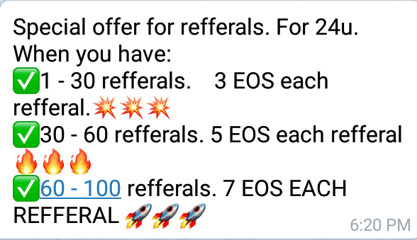 EOS BOUNTY PROGRAMderek17 (35)in #airdrop • 7 years ago 10 EOS bounty program is an ongoing program. How it works. If you refer a friend you stand to gain The following 🎗🎗🎌🎌🎌🎌🎀🎀🎀 Check the photo To join this bounty program #promotion #steemit #blockchain #eos