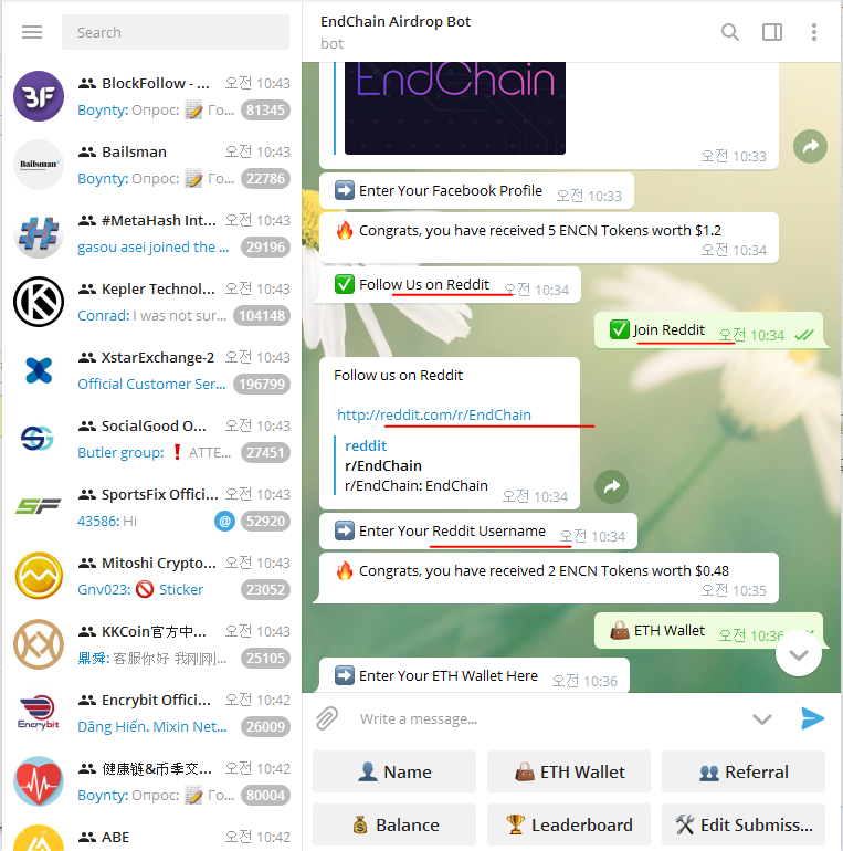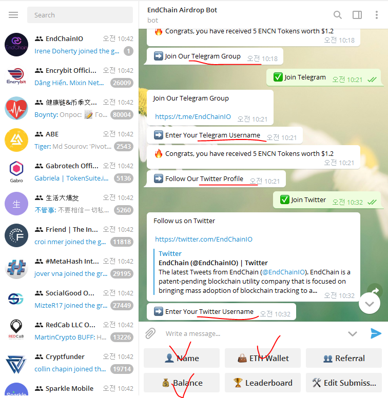 - 텔레그램 아이디 입력 @ 포함 (+5 ENCN Tokens worth $1.2)