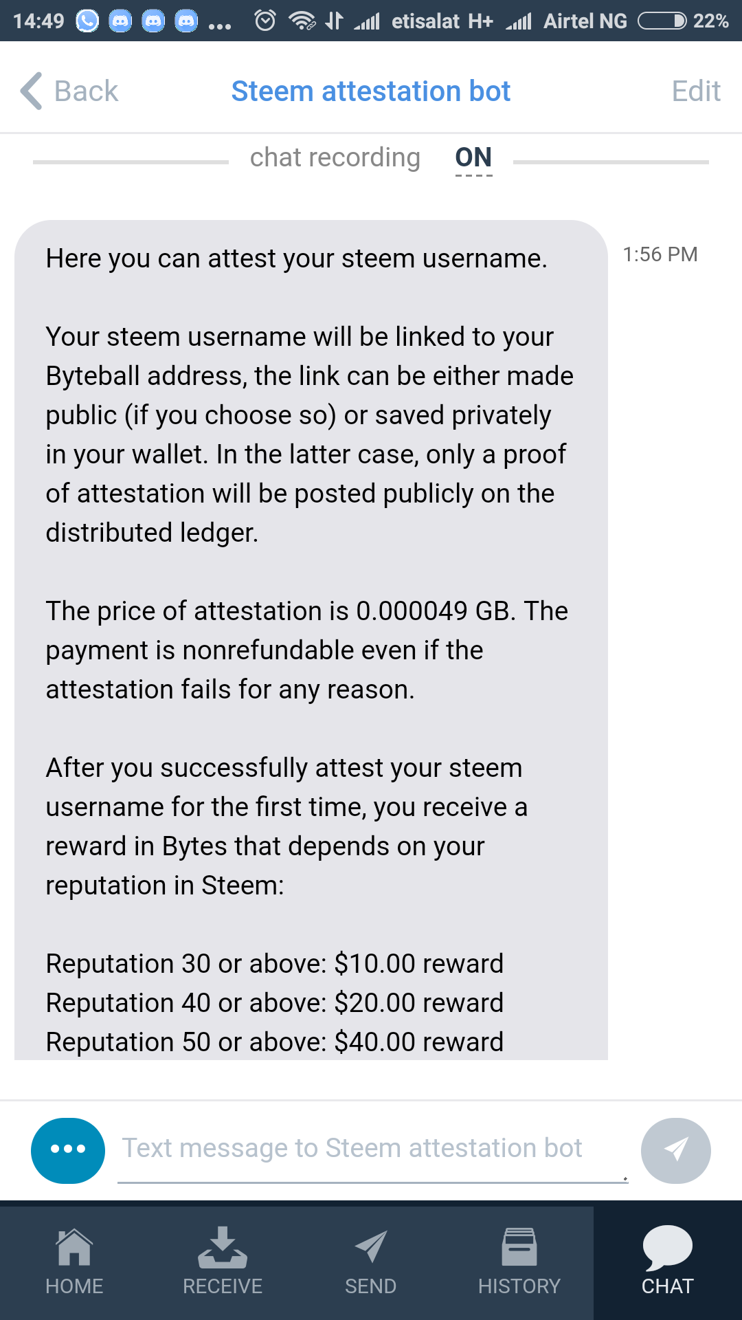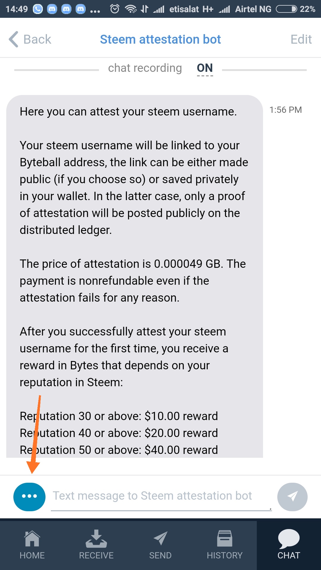 • Ask a fellow Steemian who already successfully completed the attestation, if you can borrow 0.0006 GB (49000 bytes) and have him send it to your wallet. Otherwise, you can contact me on discord or steem.chat