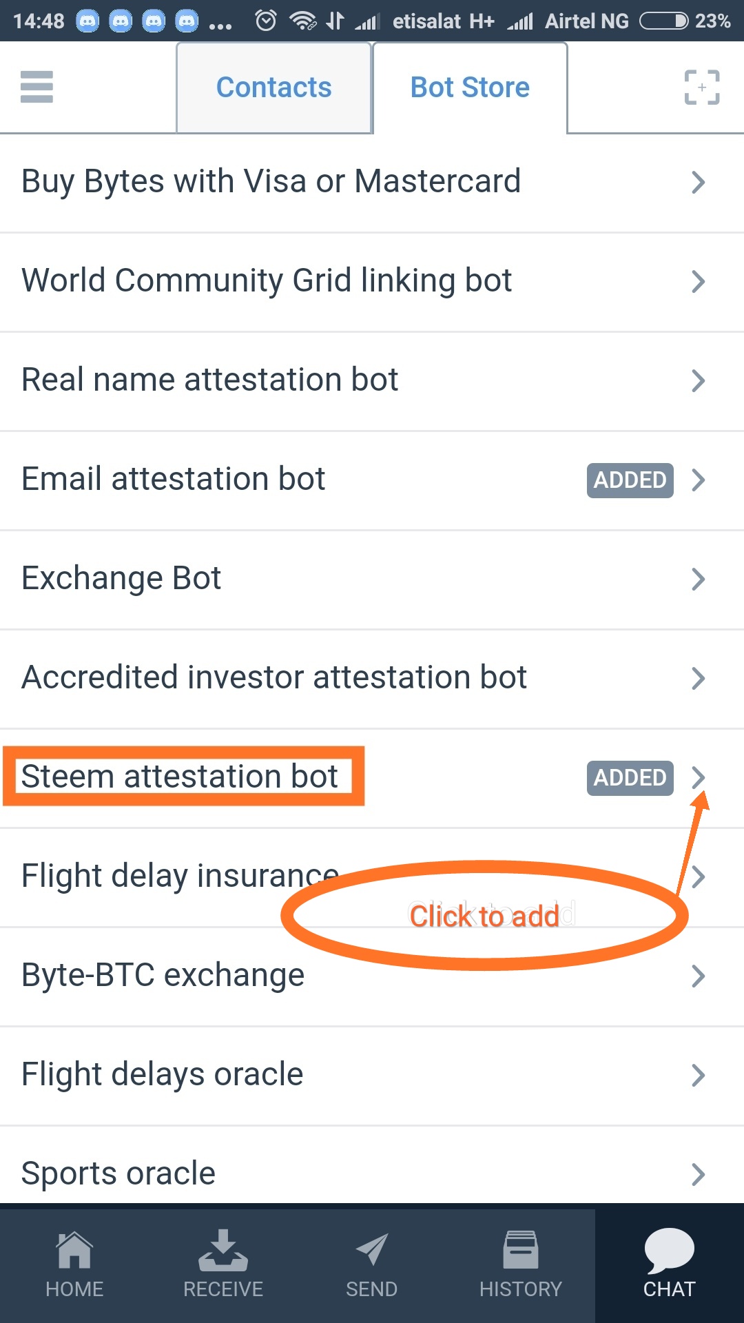 • Scroll down and select the bot named "Steem attestation bot", then click the sign to add