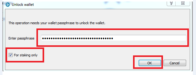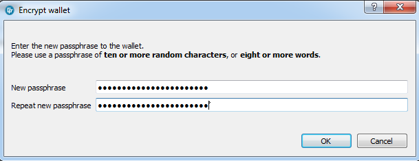 Fill up your desire wallet passphrase and click "OK" when your done.