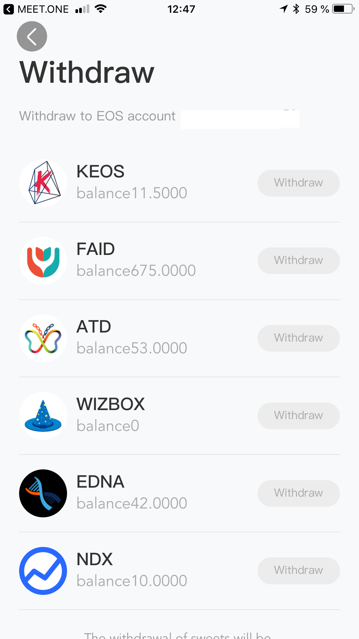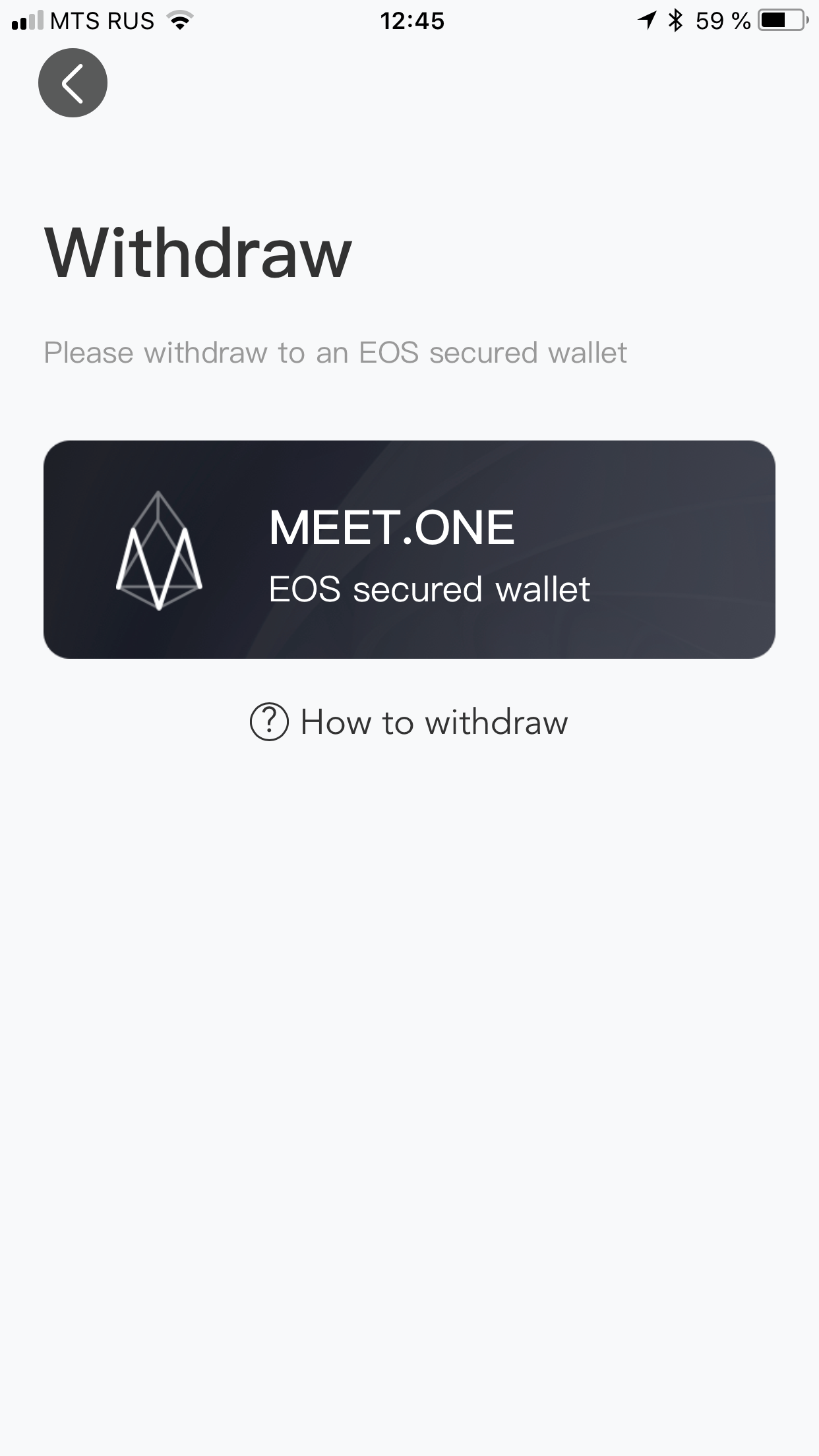 Coins need to withdraw to the wallet tied to the EOS account. In our case, this wallet MEET.ONE