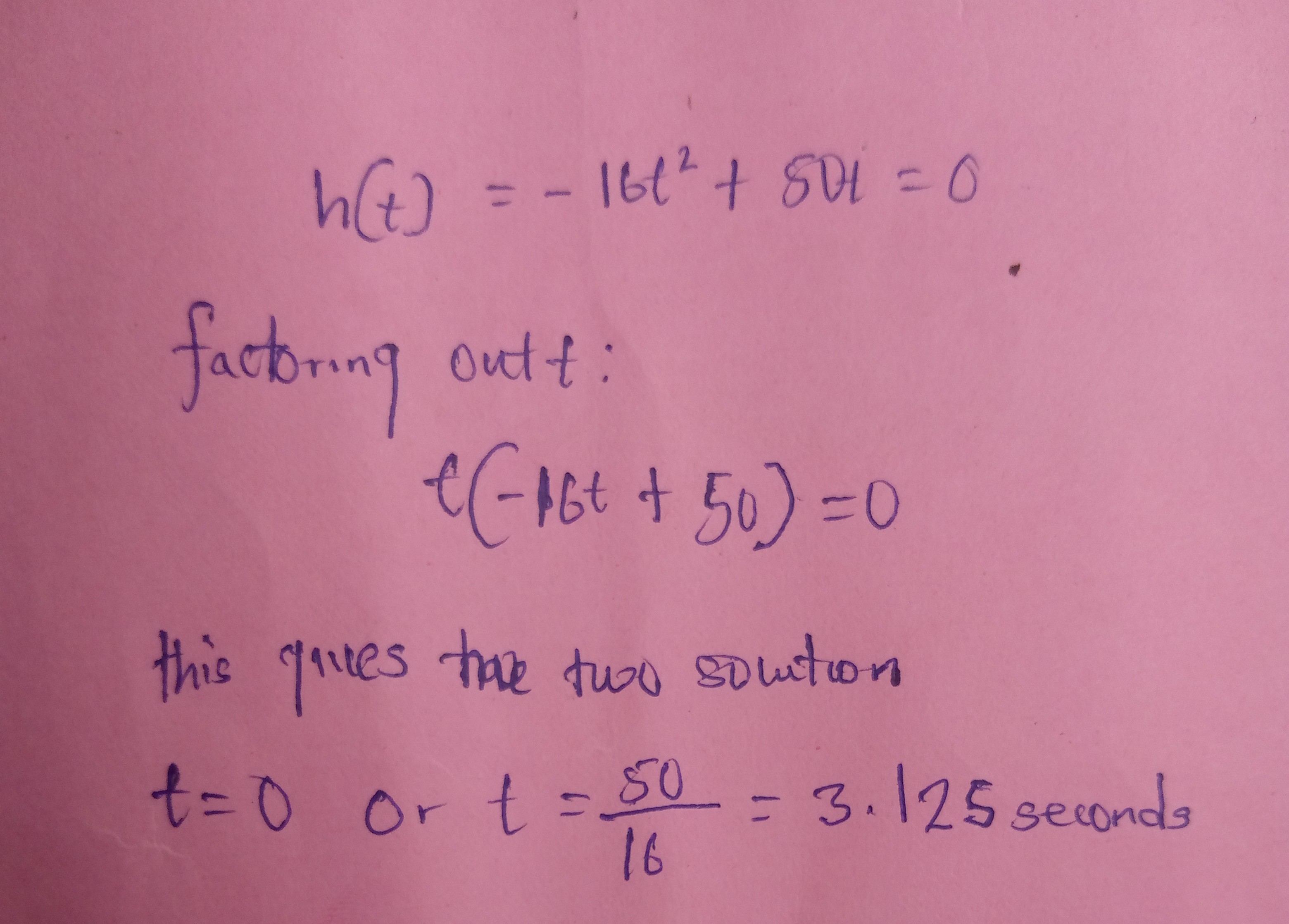 You need for suppose that there's a ball which is thrown in upward direction from ground with an initial velocity of 50 ft/s.Suppose if height of ball above ground is given by the equation h(t) = -16t^2 + 50t and here t is presenting time in seconds then;