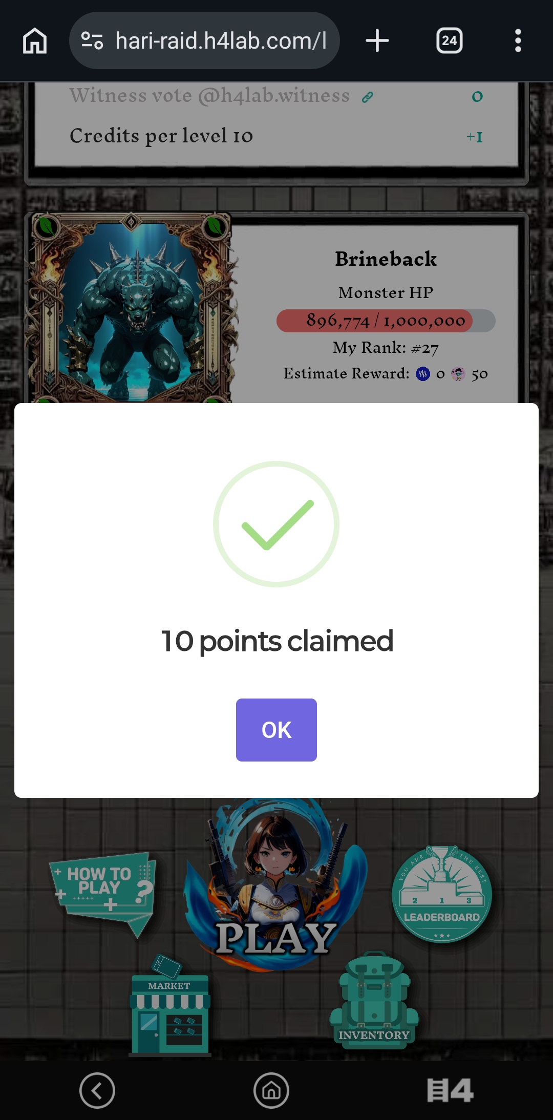 After that, I checked the leaderboard and claimed 50 points as reward.