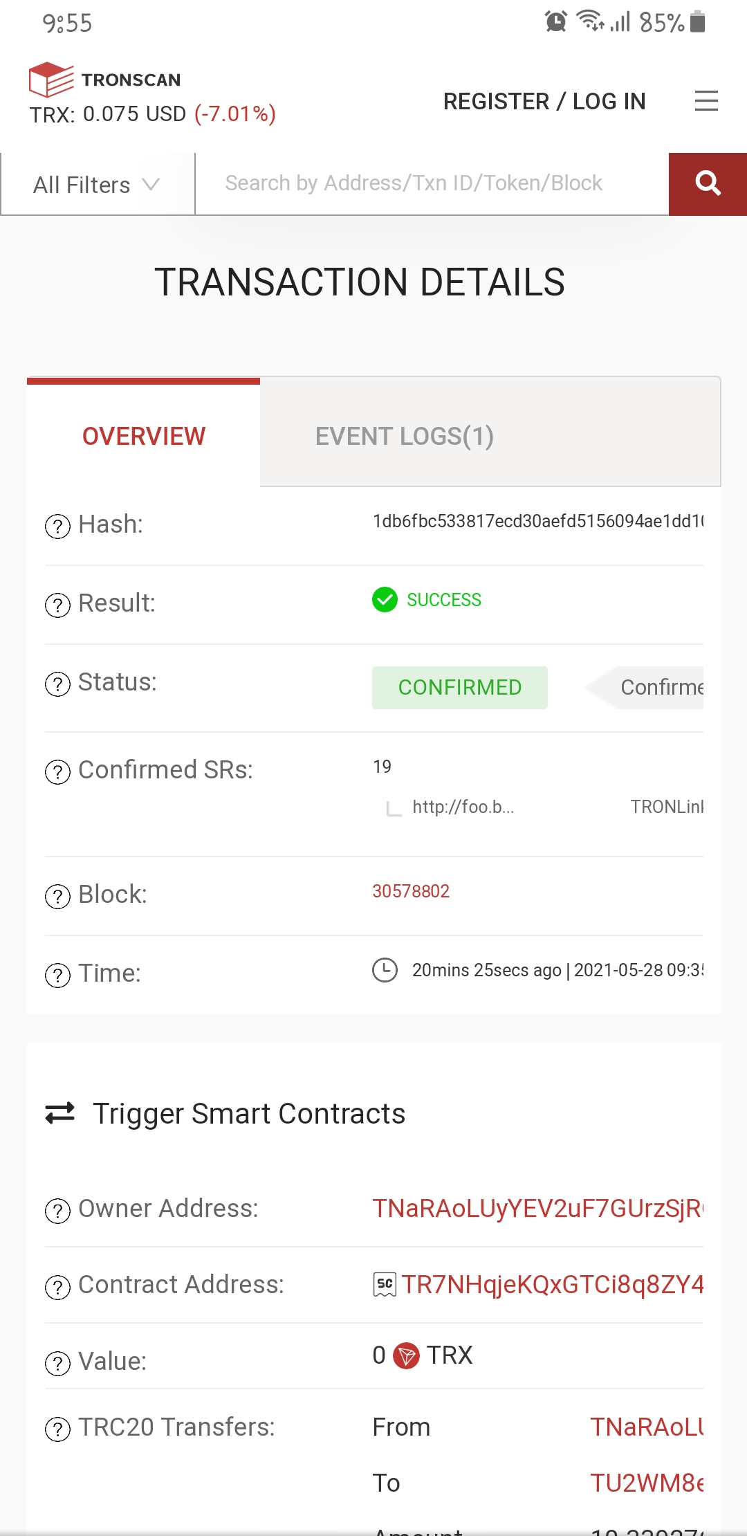 using Tronscan, i was able to see all the details about the transaction I had just done: