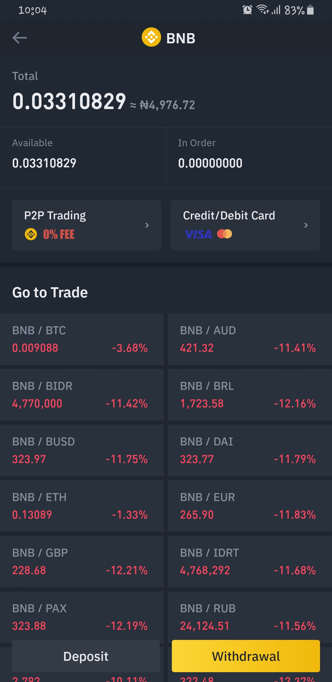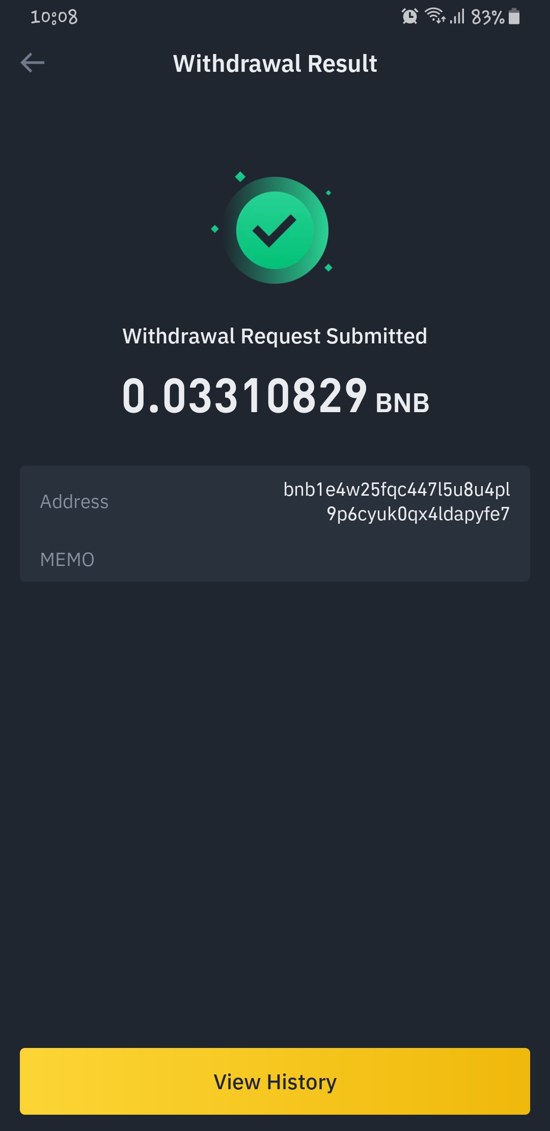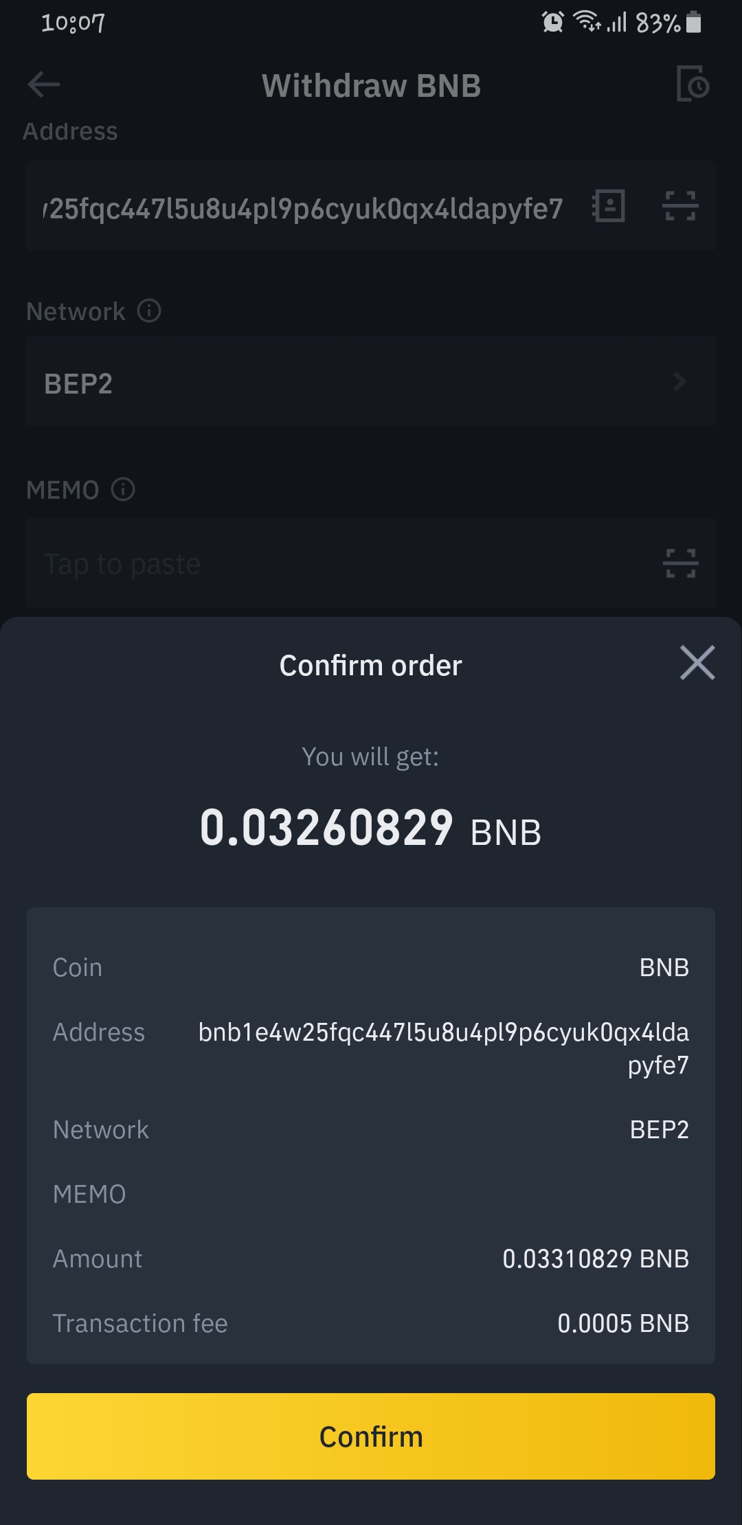 for this transaction, I decided to move my BNB from my binance to my trust wallet app.